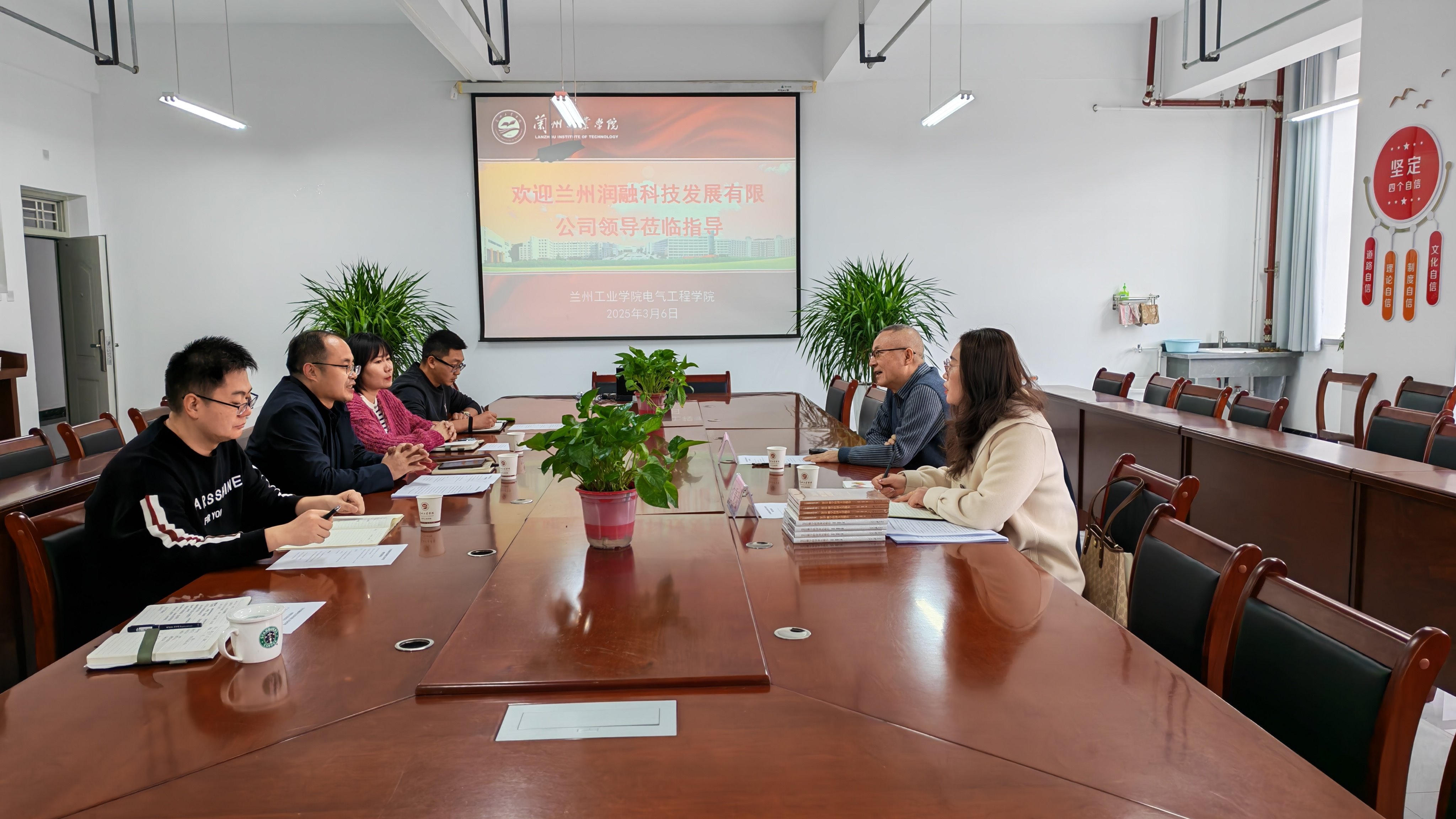 为深化校企合作,拓宽毕业生就业渠道,3月6日上午,兰州润融科技发展有限公司总经理刘建中一行到电气工程学院考察交流,就2025届毕业生招聘、校企合作等事宜进行深入洽谈。院党委书记王重贤,党委副书记、副院长吕雪婷,毕业班级辅导员参加会议。