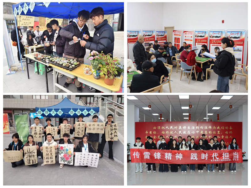 青年“行”·时代新风:学校举行“雷锋精神 代代传承”2025年“学雷锋”青年志愿服务活动启动仪式,通报表扬在学校新校区搬迁中涌现出的“志愿服务之星”,志愿者代表分享“学雷锋”志愿服务故事并宣读志愿服务倡议书,号召全校各级团学组织、全体团员青年赓续传承中国共产党人精神血脉,推动学雷锋活动融入日常、化作经常;举办志愿服务公益集市,多支志愿服务团队以“赶大集 送服务”形式设立展示台,为全校师生提供理论宣讲、“大学生志愿服务西部计划”政策咨询、减灾防灾宣传、“我为同学做实事”、爱心公益义卖等志愿服务;全校各学院组织党员师生、团员青年志愿者开展卫生清洁、关心关爱、社区报到、法治教育进校园、心理健康教育、关爱留守儿童等志愿服务活动;材料工程学院志愿者在新区职教园区图书馆分组开展清洁工作;电子信息工程学院青年志愿者深入社区,为老年人揭秘诈骗套路,发放防诈秘籍;土木工程学院志愿者围绕“植一株新绿,予世界美好”主题,借手抄报、书画等形式传播环保理念。