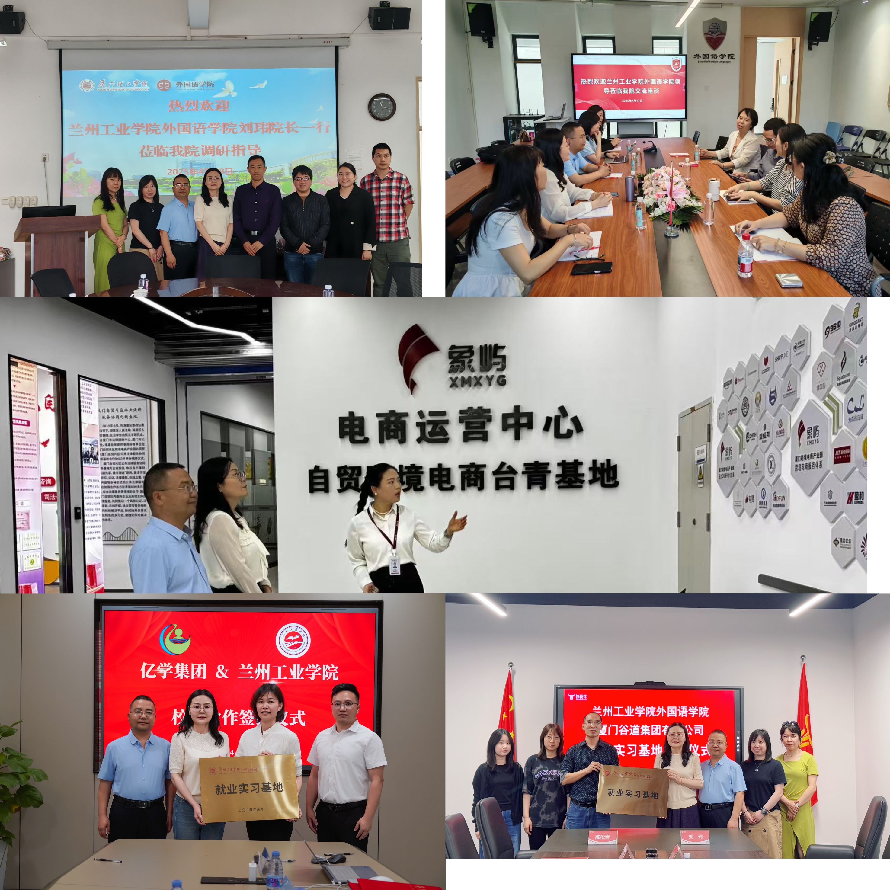 16日-17日,刘玮一行深入企业了解了各企业业务板块及人才需求、新形势背景下跨境电商运营,区域经济语言服务等新兴领域发展动态。各企业负责人对刘玮一行表示热烈欢迎,双方围绕行业发展趋势、岗位技能需求等内容进行了探讨,就校企合作人才培养模式、共建实习实训基地等达成初步合作意向,并与厦门亿学集团、中语智汇科技(厦门)、厦门隆必达科技股份有限公司、厦门谷道集团(外贸牛)有限公司四家企业签订就业实习基地协议。