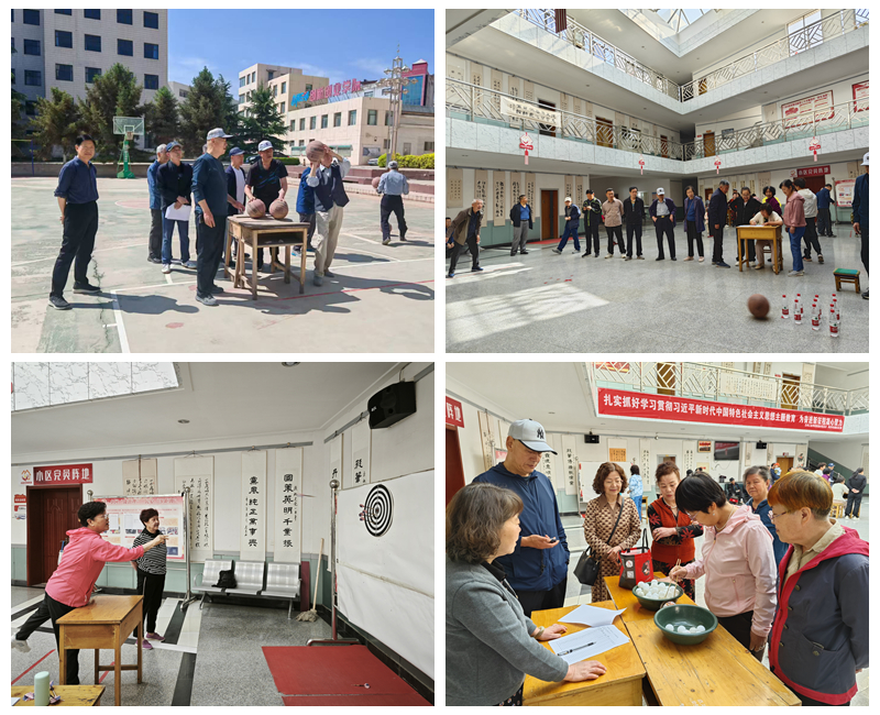 活动现场,老同志们精神矍铄、热情高涨,脸上洋溢着欢乐的笑容。在套圈项目区,大家凝神屏气,精准投掷;趣味保龄球比赛中,老同志们动作利落,一展风采;对靶投镖和定位投篮区域同样热闹非凡,加油声、欢呼声此起彼伏。大家相互鼓励、相互帮助,现场氛围轻松愉快,处处洋溢着温馨和谐的气息。