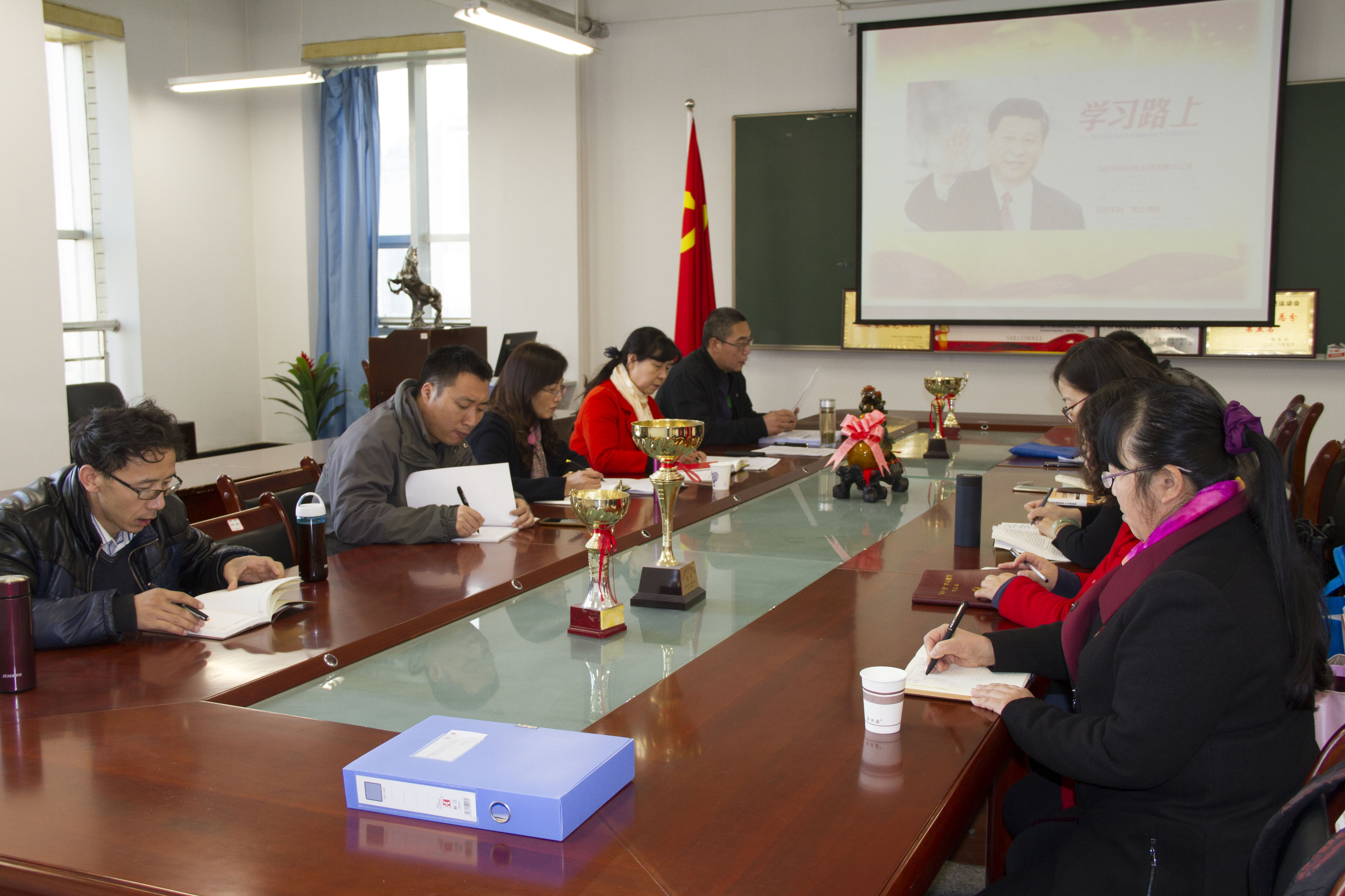 与会教师围绕党的十九大精神“进教材、进课堂、进头脑”进行了热烈讨论。大家表示,“不忘初心、牢记使命”,要紧密结合学校实际,认真学习十九大精神,把握精神实质,自觉用习近平新时代中国特色社会主义思想武装头脑、指导实践、推动工作。