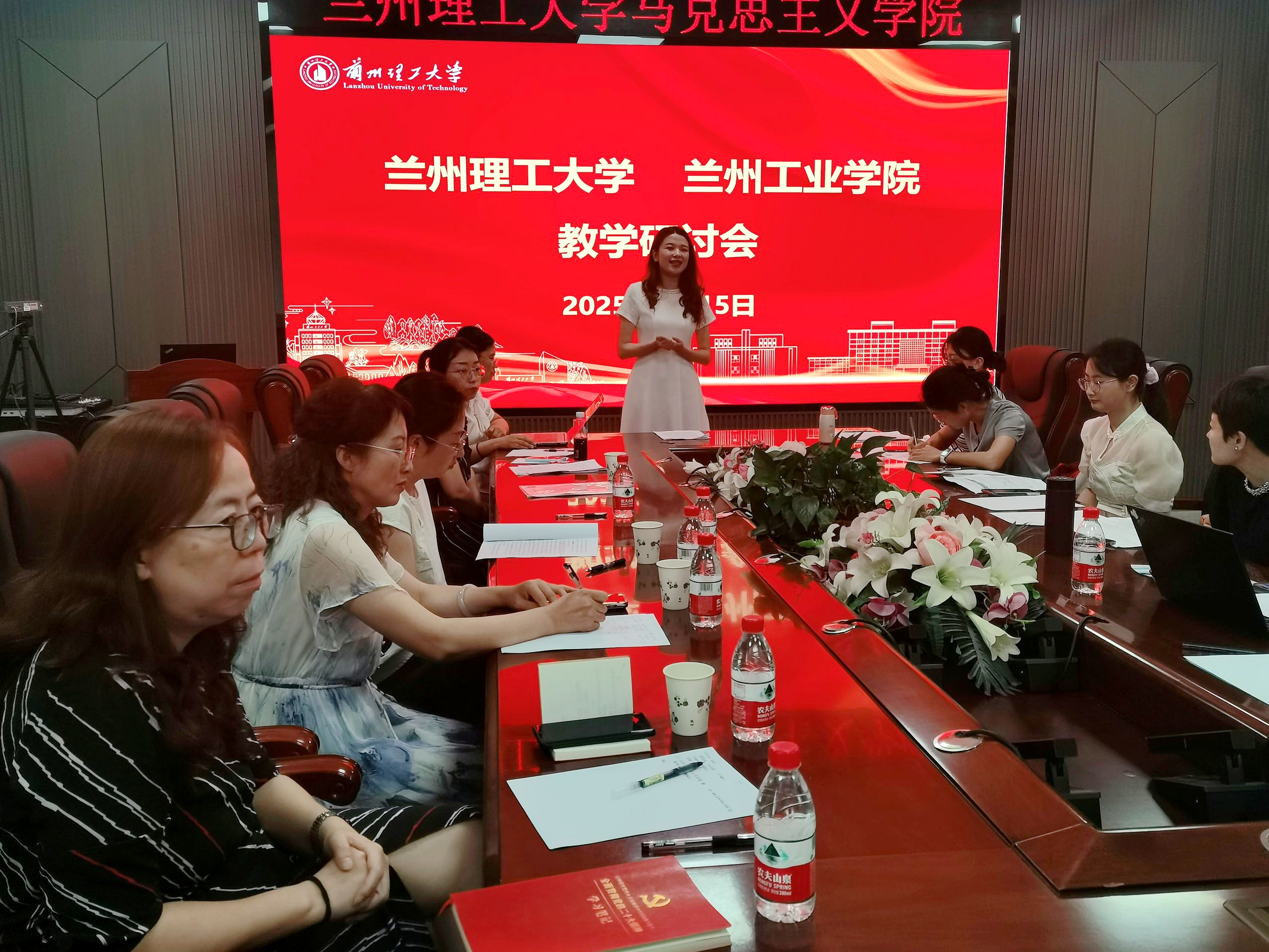 为深入学习贯彻习近平总书记关于思政课建设的重要指示精神,落实“大思政课”综合改革要求,7月15日上午,我校马克思主义学院副院长韩艳慧、邱云慧率青年教师团队赴兰州理工大学马克思主义学院开展“集体备课·协同磨课”主题教学研讨活动。兰州理工大学马克思主义学院院长饶旭鹏、副院长马云霞及相关骨干教师参加会议。