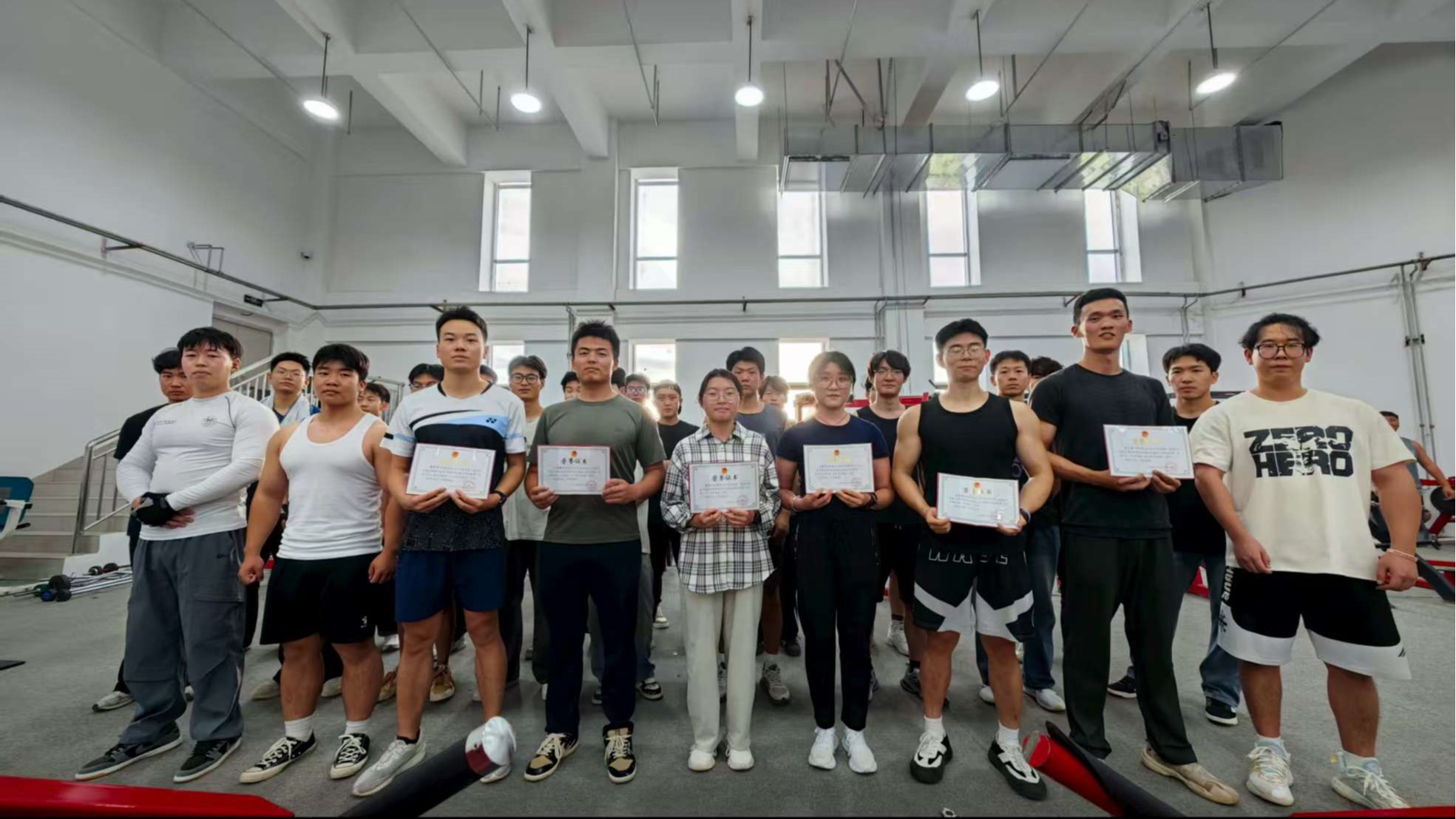 比赛设有健身教练体能挑战赛项目,内容含沙袋过杆、折返跑、半球跨越、健身球带球爬行、划船机滑行、徒手翻轮胎六项单项及个人综合体能赛,对标省级标准,选拔最强阵容。经过激烈比拼,贾学科、王佺森、雷崇刚、王旭强、高菓、王润雲六位同学脱颖而出,成功拿到省赛入场券。