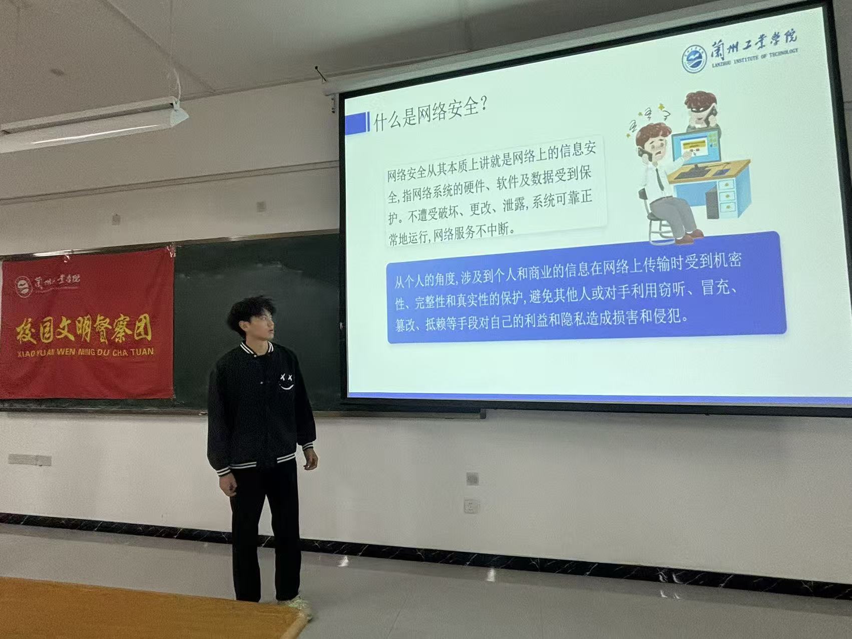 为切实增强青年学生的网络安全意识,提升防范网络风险能力,营造清朗健康的校园网络环境,9月22日,由校团委主办、校园文明督察团承办的“筑牢校园网络安全防线,护航青年学子健康成长”网络安全主题团课活动在C401教室开展。