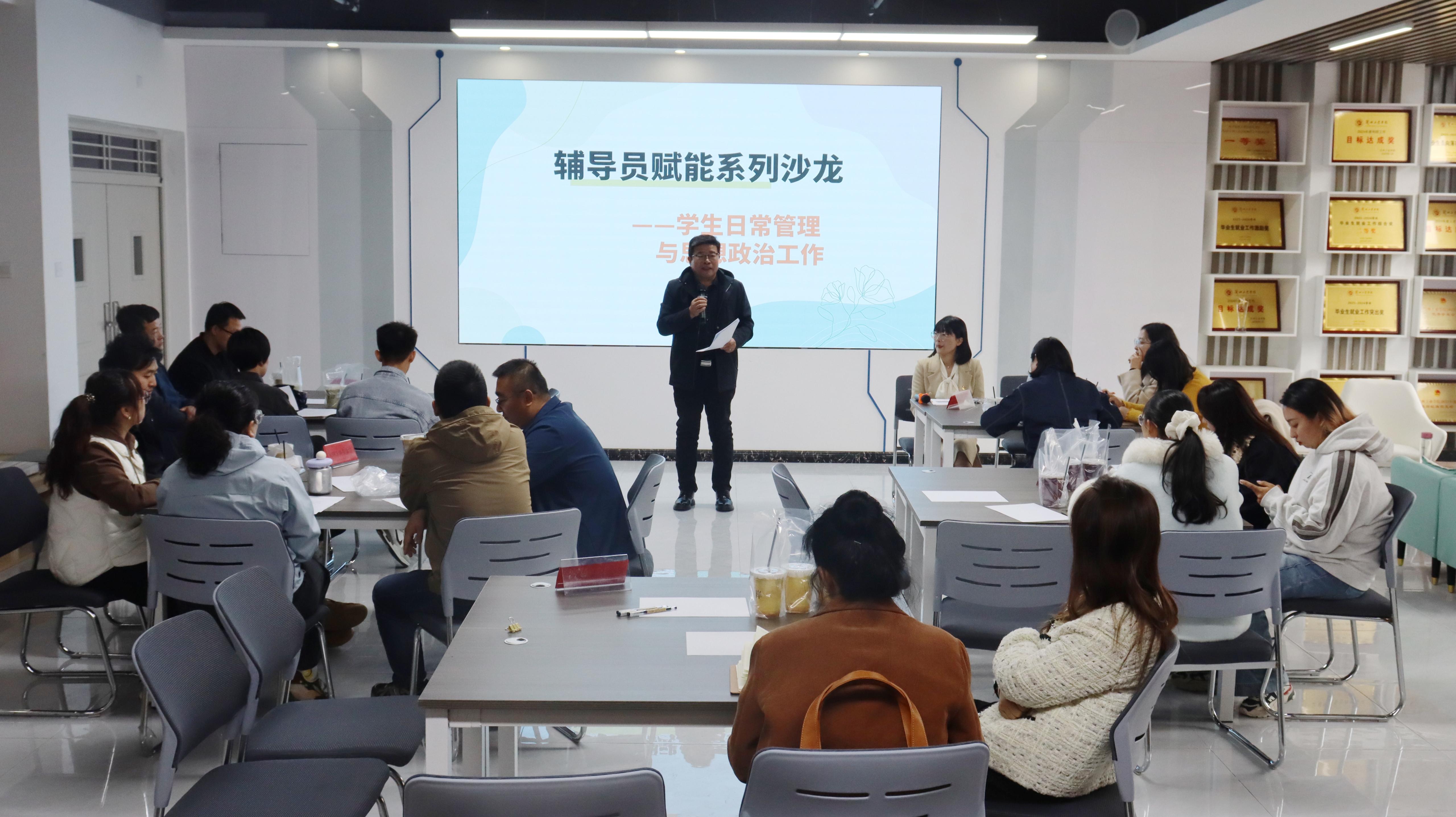 党委学工部部长高爱民表示,此次辅导员赋能沙龙是学院加强辅导员队伍建设、提升育人质量的重要举措。未来,学校将继续联合星火辅导员工作室,围绕辅导员工作中的热点难点问题,持续开展形式多样、内容务实的赋能活动,搭建辅导员交流学习的平台,推动辅导员队伍专业化、职业化发展,为培养担当民族复兴大任的时代新人提供坚实保障。