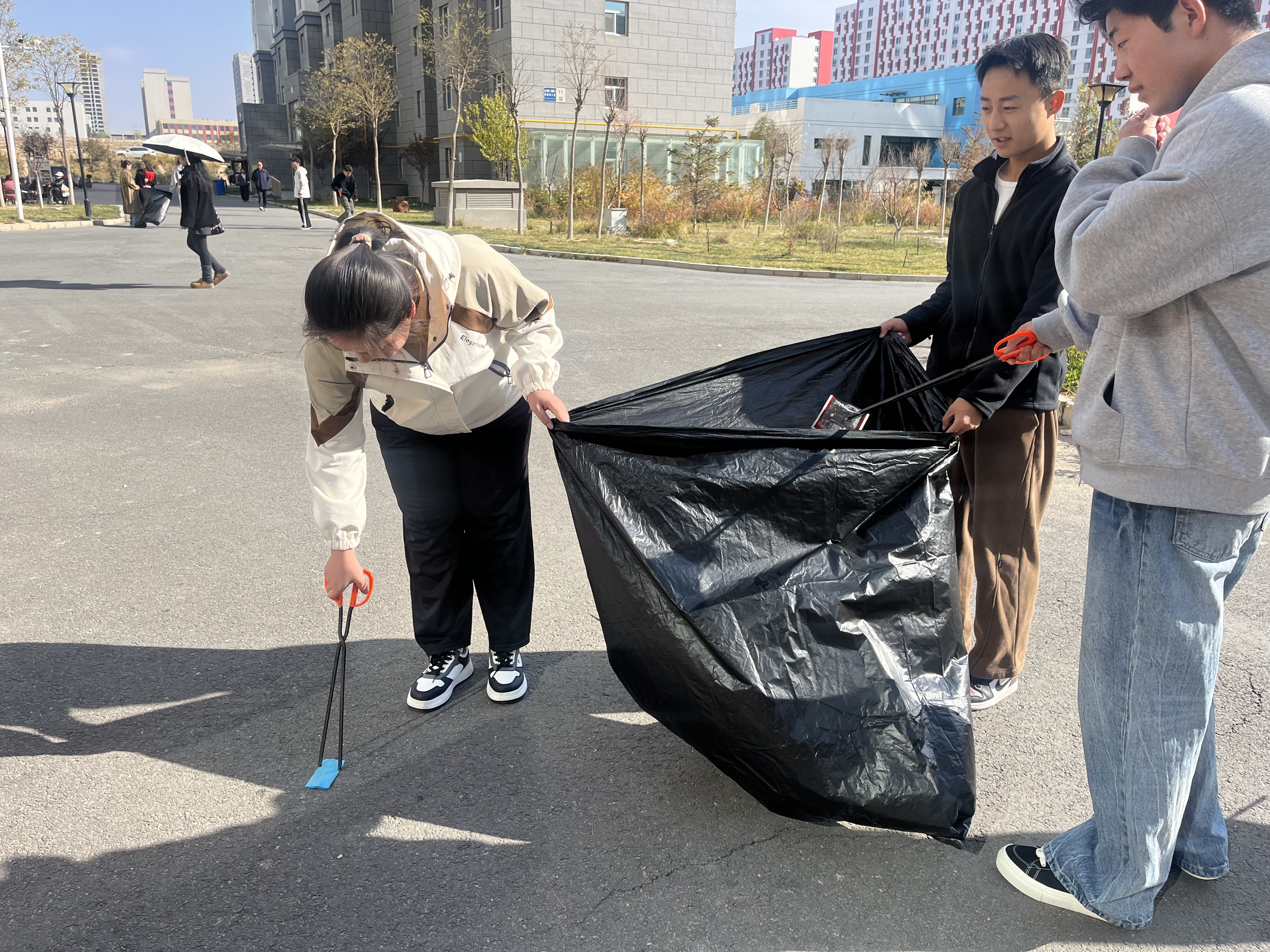 在明确了责任区域和分工后,学生党员手持清洁工具,迅速投入到劳动中。他们分工协作,配合默契,对小区内的公共绿地、人行步道、卫生死角等区域进行了“地毯式”的清理,充分展现了学生党员的先锋模范作用。