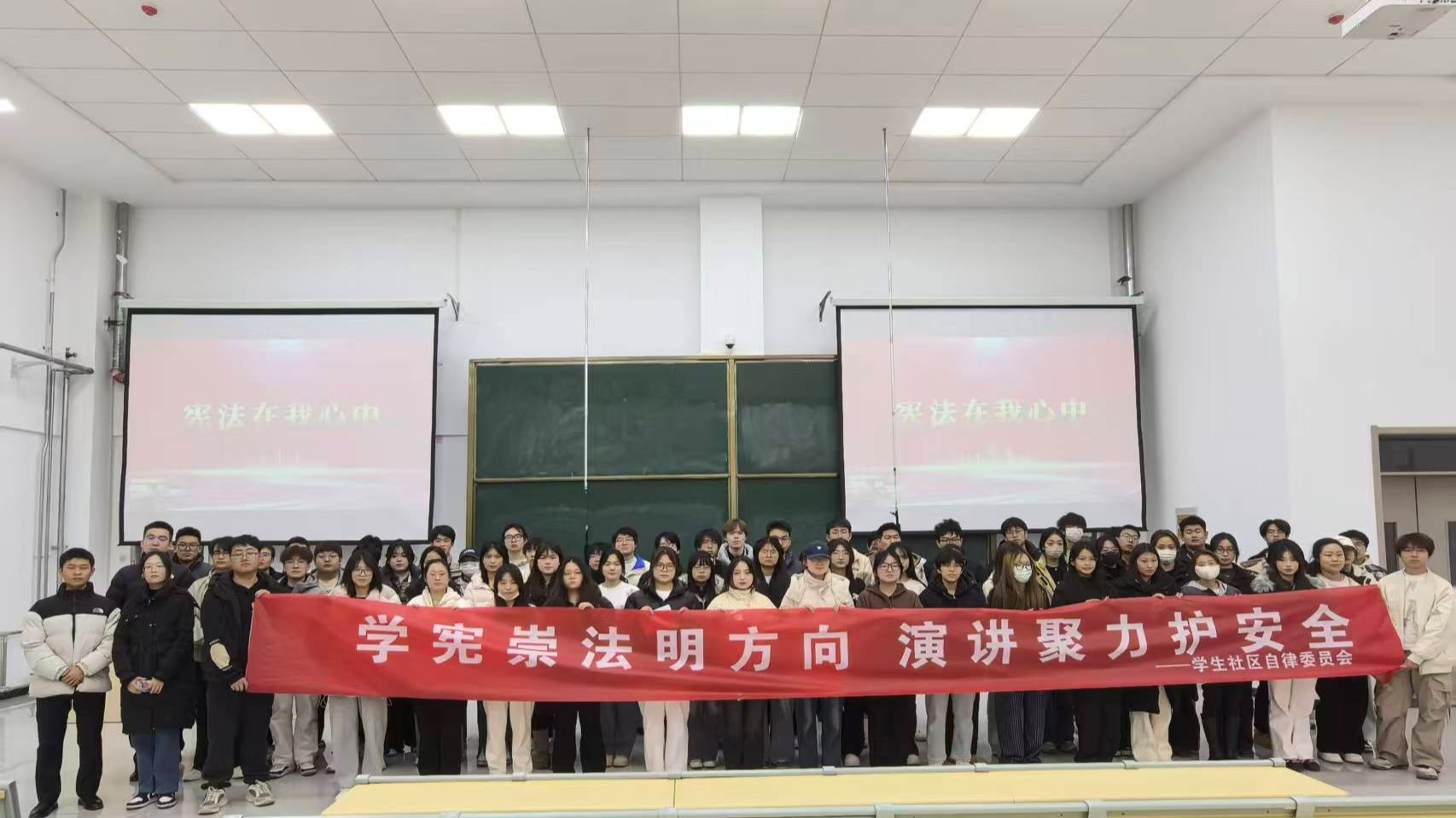 为厚植青年学子的法治信仰,筑牢校园法治根基,12月3日,在第12个国家宪法日即将到来之际,学校学生社区自律委员会在兰州新区校区公共教学楼E101教室成功举办“学宪崇法明方向,演讲聚力护安全”宪法主题演讲比赛。200余名来自不同学院的学生齐聚现场,共同聆听青年与宪法的对话,感受法治精神的磅礴力量。