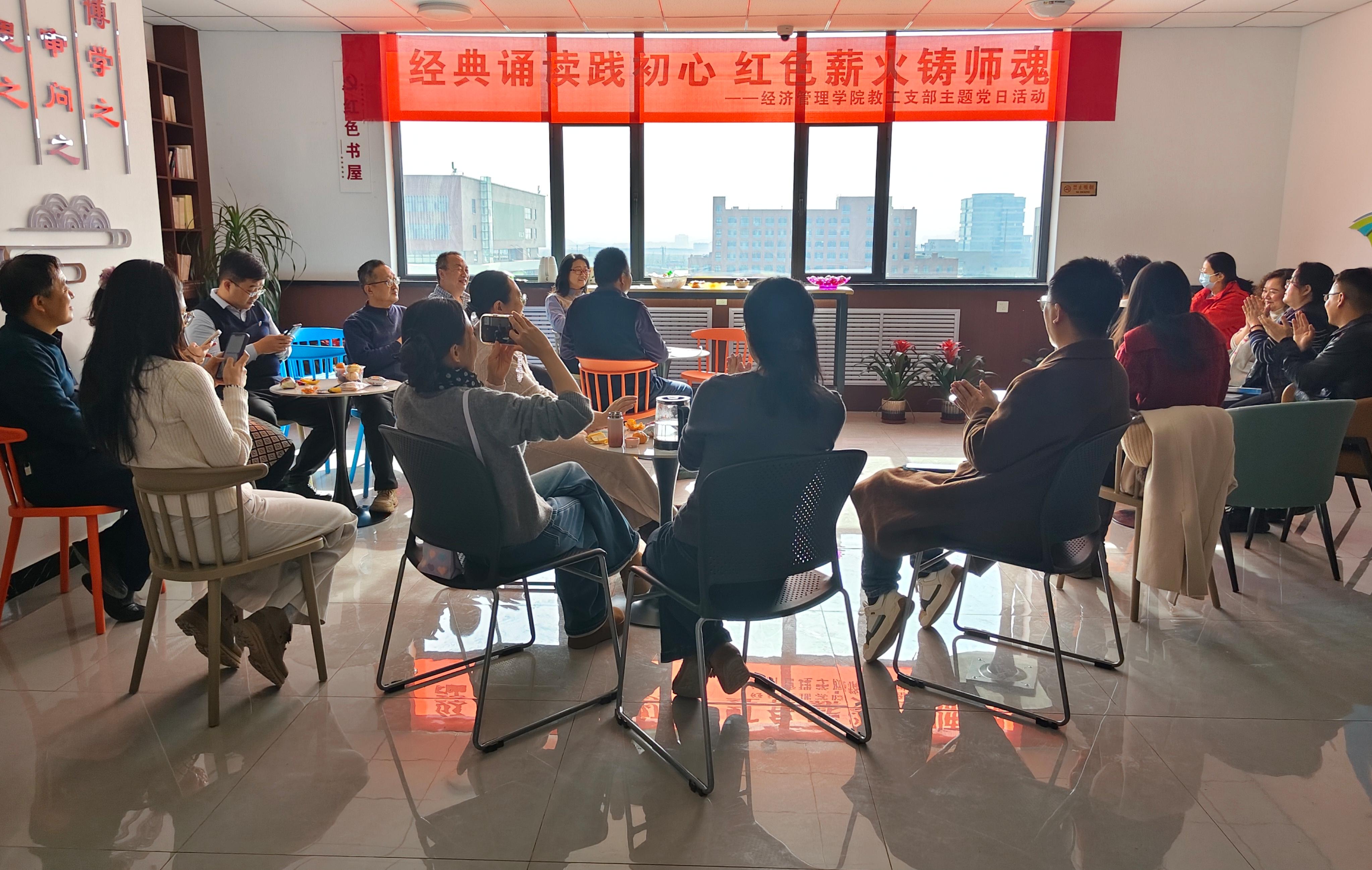 为传承红色基因、筑牢思想根基,推动传统文化和红色文化与教育教学实践深度融合,12月9日下午,经济管理学院在红色书屋举办“经典诵读践初心,红色薪火铸师魂”主题党日读书分享会。学院全体教师党员参加活动。