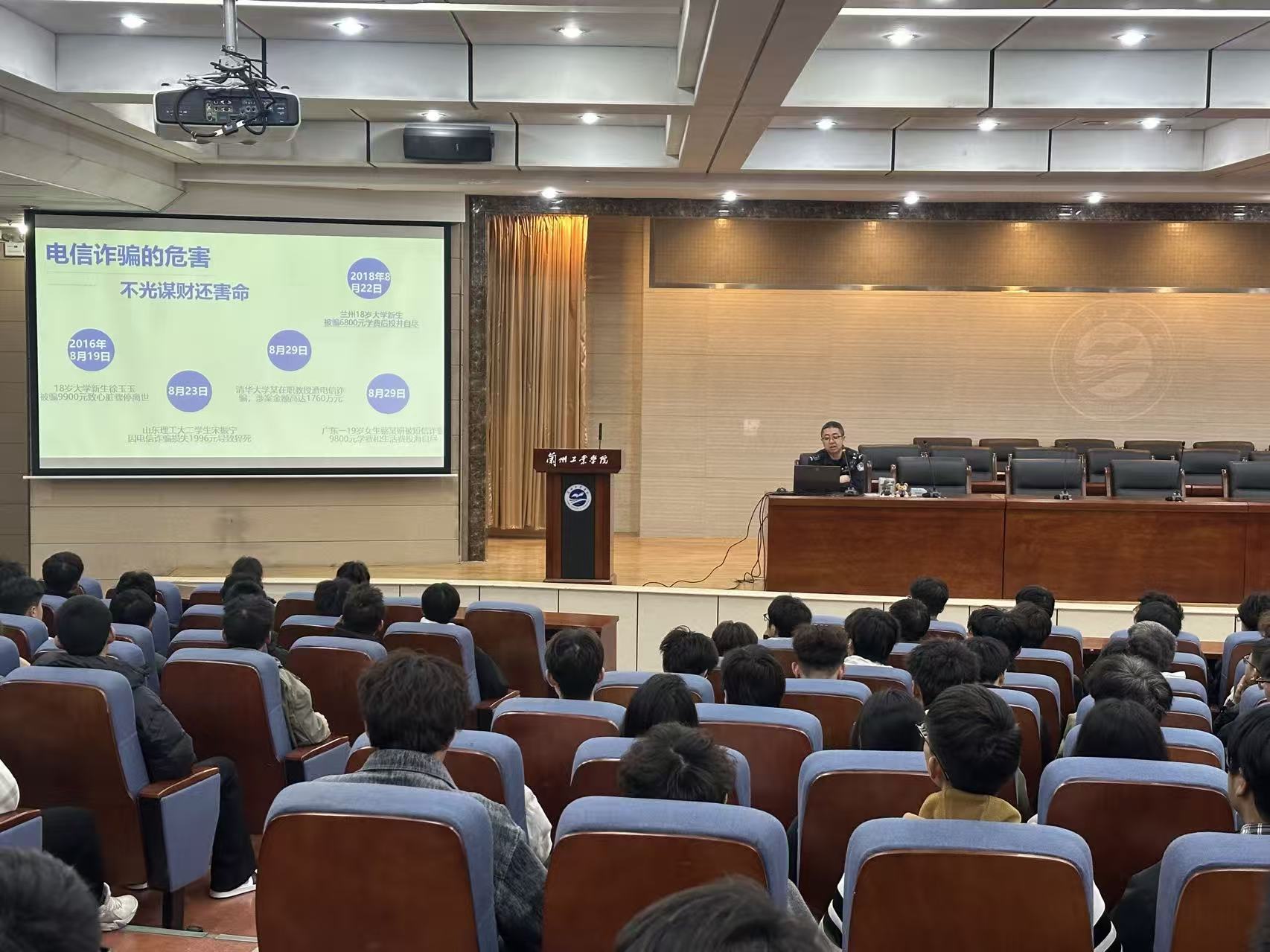 为进一步提升在校学生的安全防范意识,有效遏制电信网络诈骗向校园渗透,切实守护广大学生的财产安全,3月17日下午,学生处联合龚家湾派出所邀请七里河公安分局反诈中心资深警官马顺岩走进校园,为现场300余名同学带来了一场生动而深刻的防范电信网络诈骗知识专题讲座。