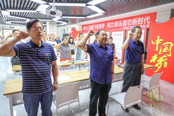 7月16日下午,机关党委第五党支部举行系列主题党日活动。校党委书记俞子泓、副书记黄荟铭、副校长李贵山、机关党委负责人参加活动。
