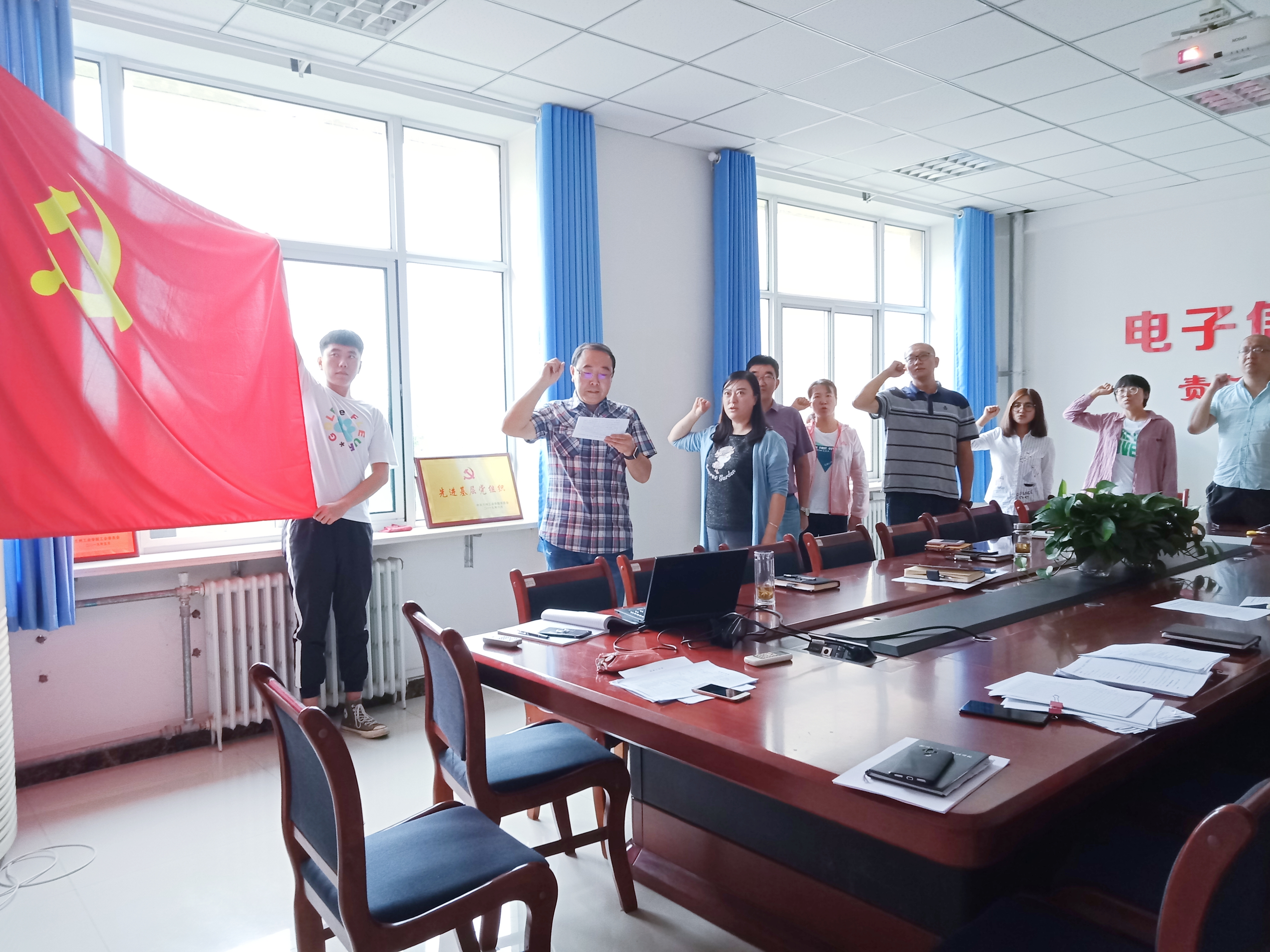 会上,根据学校2019年秋季学期师德师风建设活动要求,开展“立师德 铸师魂 开学第一讲”教师教育活动。学院院长周征带领全院教师进行教师宣誓承诺,并在2019年师德师风承诺书上签字,要求全院教师明确职责,严格按照承诺书中的条款要求自己,提高学院师德师风建设整体水平。