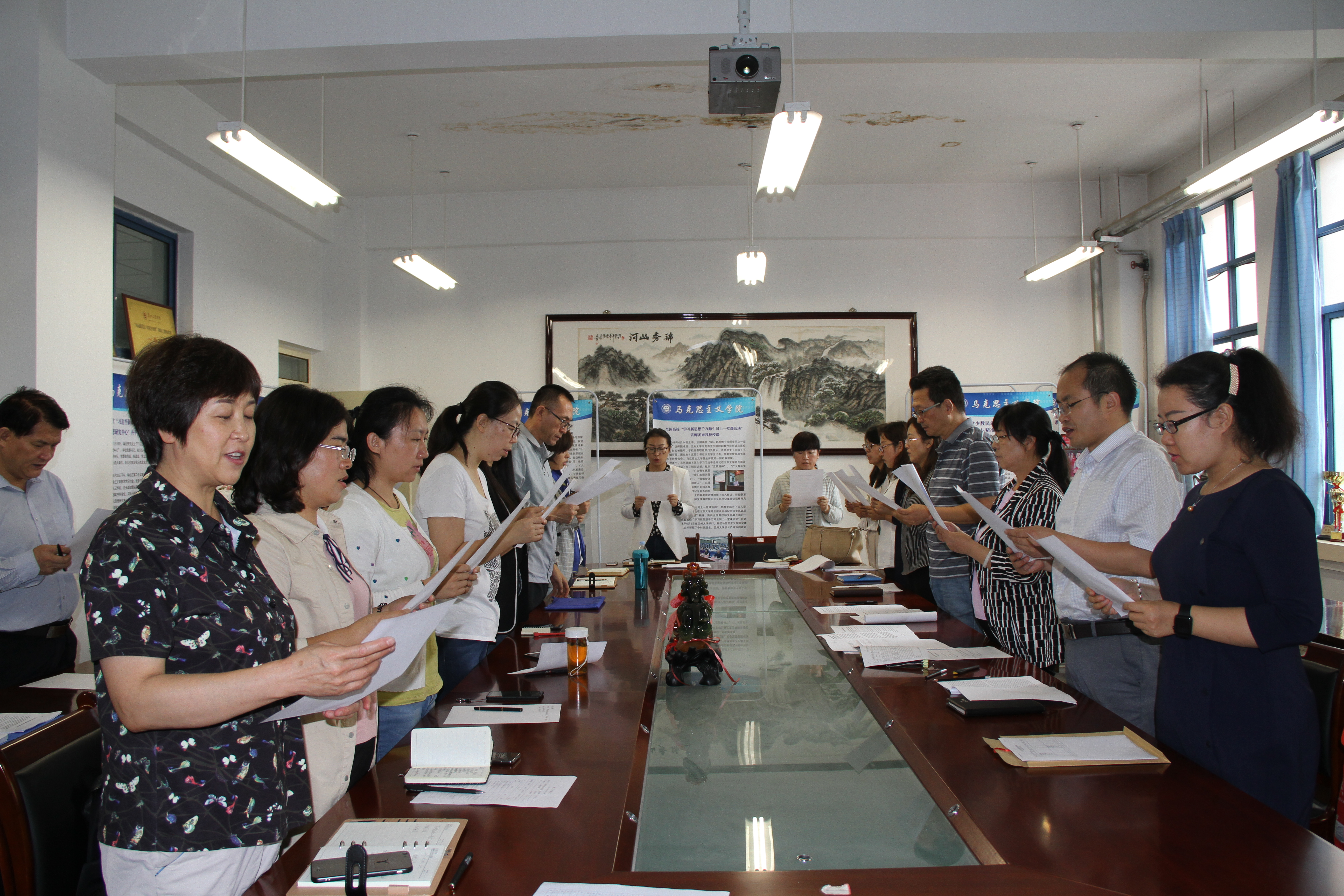 王重贤传达学习了《中共中央办公厅 国务院办公厅印发的《关于深化新时代学校思想政治理论课改革创新的若干意见》和学校有关会议精神。