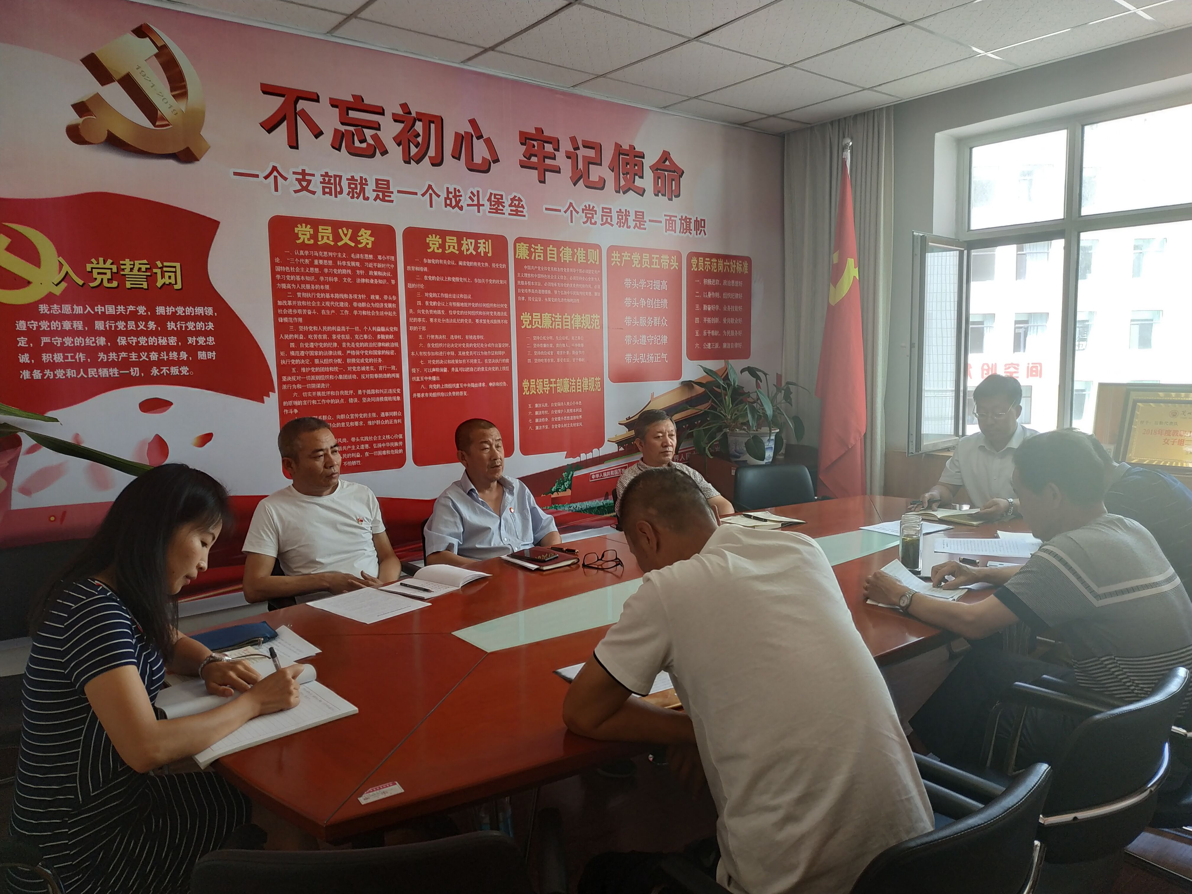 7月5日上午,后勤管理处党支部组织全体党员在会议室召开“学党章守党纪、学先进作表率”主题党日活动。党总支书记薛旺录主持活动。