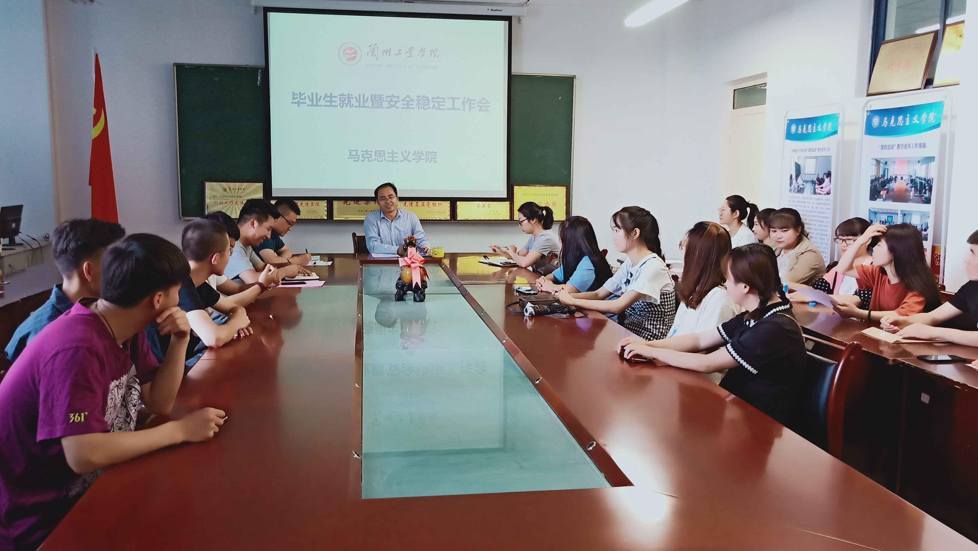 6月17日下午,马克思主义学院召开毕业生离校暨安全稳定工作会议,学院党总支书记王重贤主持会议,学院辅导员、班主任,2016级文秘专业毕业生共30余人参加会议。