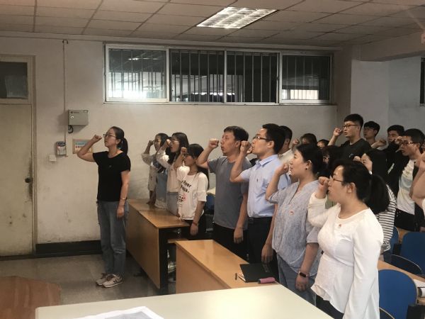 2019年6月18日下午,材料工程学院在一教A202举行党旗下宣誓仪式。学院党委书记罗柏林,党委副书记、副院长陈玉梅,三位学生支部书记以及60名学生党员参加了宣誓仪式。 会议提出,学生党员要时刻谨记自己的党员身份,加强党的理论知识学习。要大力弘扬、传承精益求精、守正创新、坚韧不拔的工匠精神,把工匠精神融入到学习、工作中,以求更好地发挥党员的先锋模范作用。要讲纪律,讲规矩,时刻注意自己的言行举止,做有纪律,懂规矩的人。要时时反省自己,发现自身缺点及问题,及时改正,做一名合格的共产党。