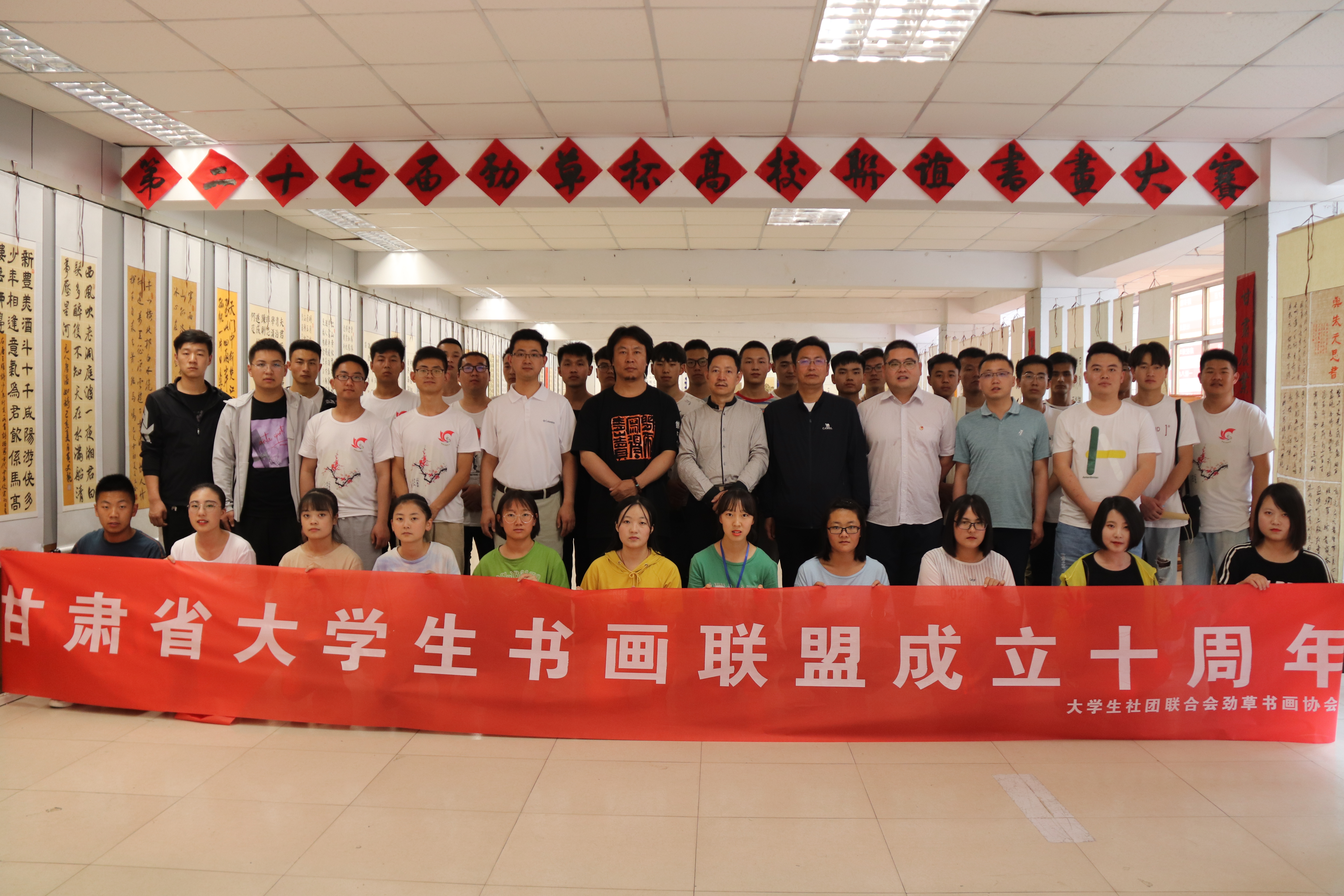 6月11日,由校团委、图书馆主办的庆祝甘肃省大学生书画联盟成立十周年系列活动暨兰州工业学院第二十七届“劲草杯”高校联谊书画大赛在大学生活动中心开幕。中国书法家协会会员、清华美院艺术创作研究会理事、清美研究会书法专业委员会秘书长韩建文,中国书法家协会会员、甘肃省工笔画协会副会长、甘肃省书法家协会篆刻委员会委员、甘肃省青年书法家协会理事马宏伟,甘肃省大学生书画联盟主席、兰州大学书法研究所艺委会主任、甘肃省书法协会写经委员会秘书长、甘肃省青年书法家协会理事马宇出席开幕式并致辞。图书馆、校团委负责人以及近百名师生参加了开幕式。