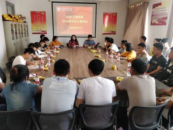 2019年6月13日下午,材料工程学院在学院党员之家召开2019届毕业生代表座谈会。学院副书记、副院长陈玉梅主持座谈会。毕业班辅导员、班主任及毕业生代表30余人参加了座谈会。 座谈会上,毕业生代表畅谈大学期间学习体会和生活感受,共叙师生之情,展望美好未来。同时也对学院的发展提出了宝贵的意见和建议。老师们对毕业生们提出了殷切的希望,希望同学们踏实做事,秉承学校优良校风,踏踏实实工作和学习,用辛勤和汗水赢得幸福未来;心系母校,在以后的工作中,多关心支持学校发展,共享学校成功发展的喜悦。