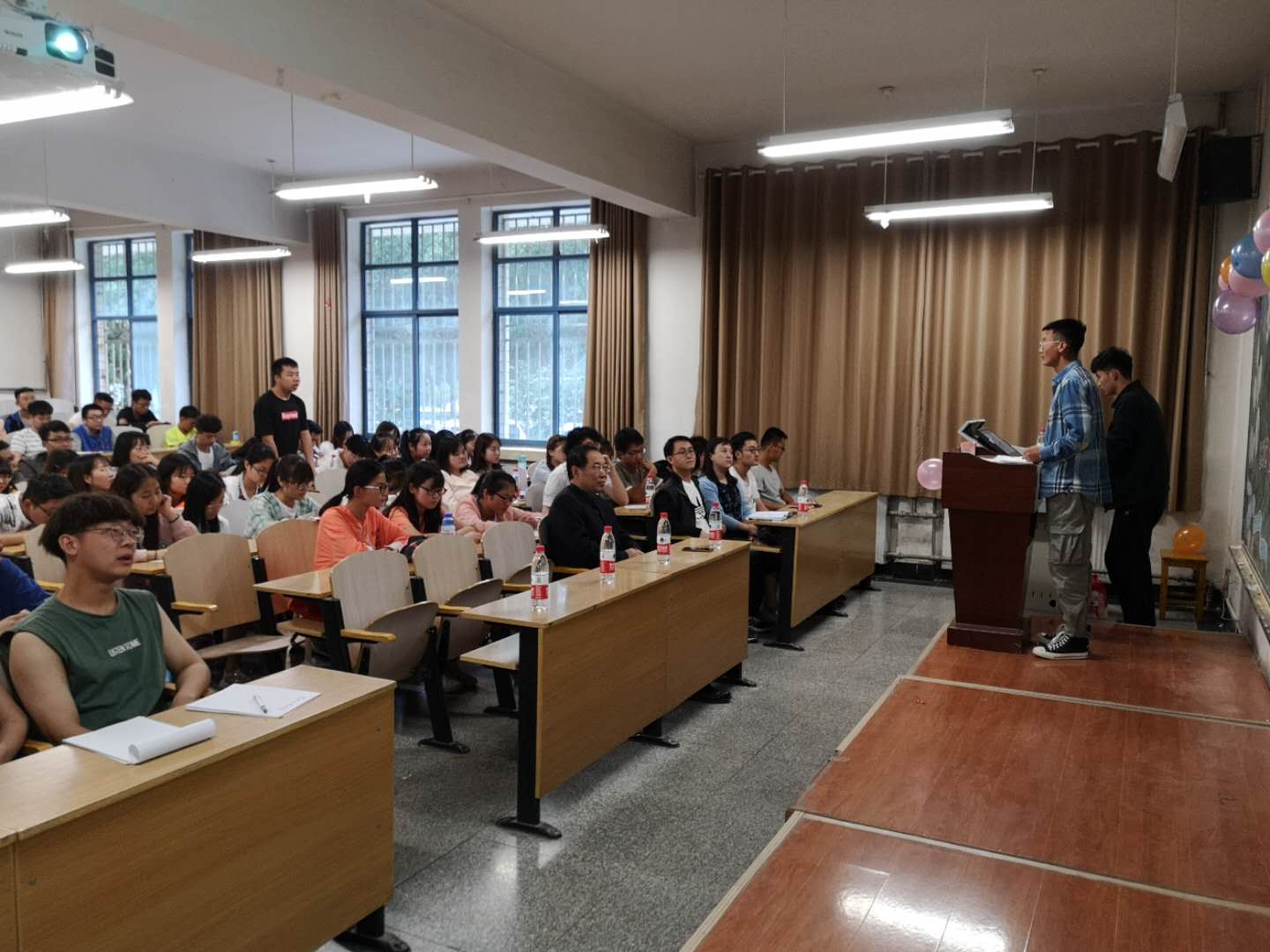 6月2日晚,李贵山副校长参加指导联系班级通信18-1、2班的主题班会。学院党委书记李萍,辅导员、班主任及通信18-1、2班全体学生参加了班会。