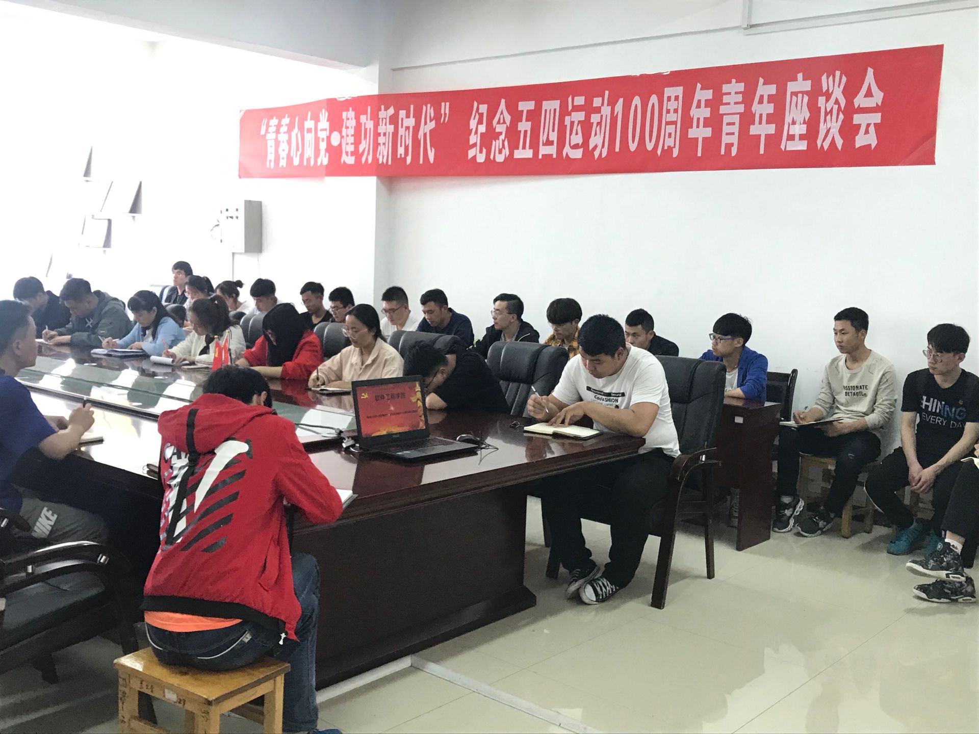 2019年4月23日下午,软件工程学院在学院会议室召开“青春心向党,建功新时代”纪念五四运动100周年青年座谈会。学院党委书记赵亚明,副书记、副院长辛欢及教工团干、学生党员代表,青年团学干部代表参加了本次座谈会。