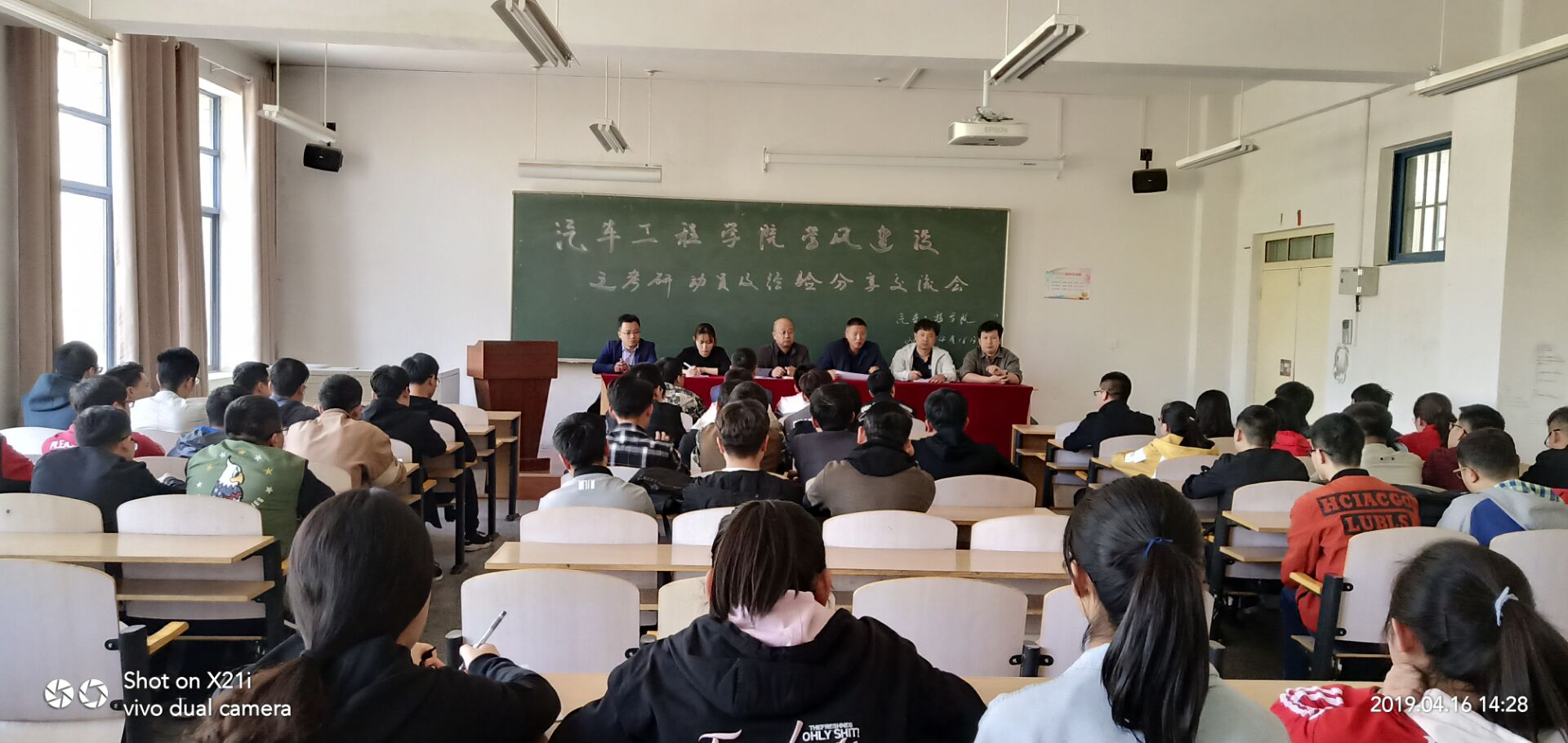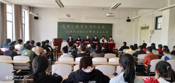 2019年4月16日下午,汽车工程学院在第四教学楼A318教室召开考研动员及经验分享交流会。学院党委书记张海鹏,党委副书记、副院长张辉,辅导员、班主任以及2016级学生参加了会议。 会上,张辉介绍了学院2017-2019年考研报录情况,为2020年考研学生选择目标院校提供了参考意见。张海鹏鼓励同学们在考研途中不要气馁,一定要坚持到底!2015级七位考取硕士研究生的同学依次讲述了他们在考研过程中遇到的困难,分享了学习方法和技巧。 此次考研动员及经验交流会的召开,旨在激发学生考研热情,让同学们有了更明确的目标和更高效的复习方法。