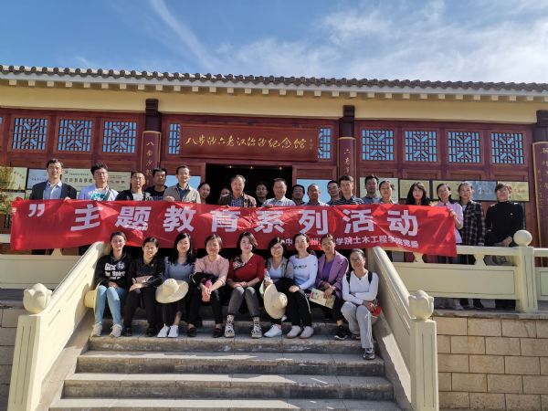 9月30日,土木工程学院党委组织学院全体教工党员在古浪县开展“不忘初心 牢记使命”主题党日活动。 活动中,全体党员为西路军古浪战役纪念碑敬献了花圈并重温了入党誓词,先后参观了西路军古浪战役纪念馆和八步沙六老汉治沙纪念馆,并到八步沙林场进行参观,实地学习全国时代楷模——八步沙治沙六老汉历经三代人艰苦奋斗,敢把沙漠变绿洲的治沙精神。 通过本次主题党日活动,学院全体教工党员思想上有了收获,精神上受了洗礼。大家纷纷表示,要以此次主题党日活动为契机,结合学校“一重四改、转型发展、迎评促建”三大重点工作,在教学、科研等方面充分发挥党员先锋模范作用,争做“四有”好老师。