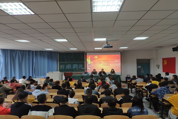 2019年10月10日,土木工程学院分党校在第四教学楼C202举办第十六期入党积极分子培训开班典礼。学院党委书记赵万双、各学生党支部书记及全体培训学员参加了开班典礼。 开班典礼上,学员代表土木17-2班展泽之在发言中表明今后要认真学习、积极进取,争取早日成为一名中国共产党员。赵万双指出当代青年大学生要牢记使命,勇于担当,树立的崇高理想,发扬乐于吃苦的精神。 开班典礼结束后,吴翼虎围绕发展党员的程序和手续,党的性质、宗旨,指导思想及党员的义务和权利等讲授了本期培训班的第一课。