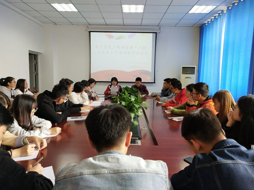 2019年10月10日,电子信息工程学院分党校在科技楼519举办第十六期入党积极分子培训班开班仪式,本次培训班的全体学员参加了开班仪式。 开班仪式上,培训班班主任宣读了《关于举办党校第十六期入党积极分子培训的通知》,详细介绍了本次培训课程的具体内容,并提出了学习和纪律要求。学员代表发言表明学习的态度和决心。 开班仪式后,学院党委书记李萍以《谋幸福 谋复兴 强担当 做表率》为题讲授了开班第一课。