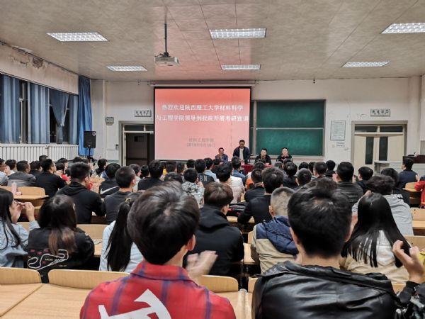 2019年9月19日晚,材料工程学院邀请陕西理工大学材料科学与工程学院领导作考研宣讲。学院院长韩国才主持宣讲会,学院党委书记罗柏林,党委副书记、副院长陈玉梅,学院部分教师及16级全体考研学生参加了会议。