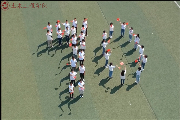 2019年9月26日,土木工程学院百余名学子唱响爱国之歌《我和我的祖国》,在学校的四号教学楼、图书馆、南操场、学院实验室等地点,利用无人机航拍等技术,开展了“礼赞新中国奋进新时代”快闪活动,表达对祖国真挚的祝福。 本次活动通过有仪式感、参与感、时代感强的活动方式,大力弘扬以爱国主义为核心的民族精神,使学生参与其中、乐在其中、受教育在其中,充分展现了土木学子爱国、奋进、担当的精神风貌,进一步激发了大家的爱国之情、强国之志,增强了不忘初心、牢记使命、爱国爱党、不懈奋斗的责任感和使命感。