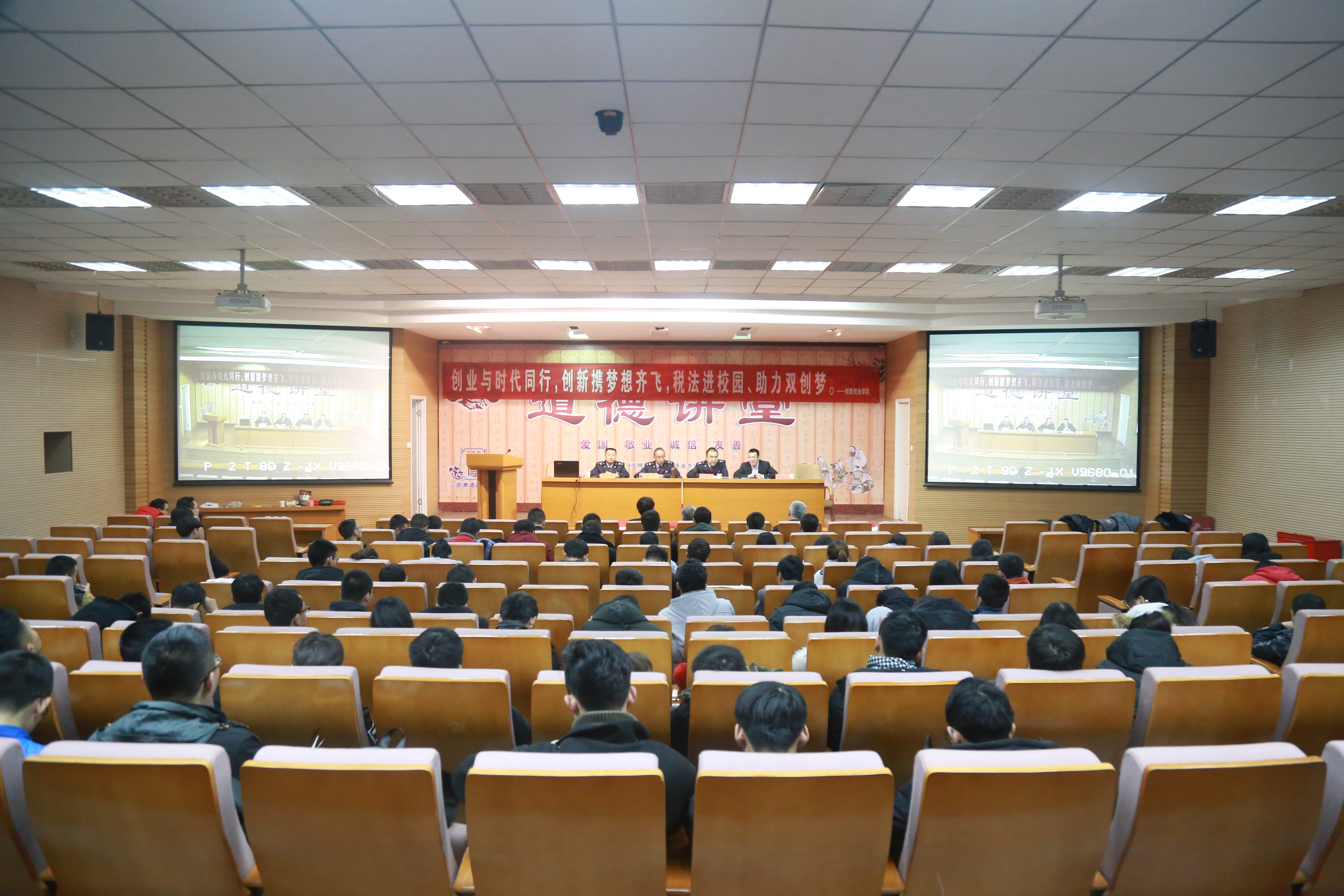 为了深入贯彻领会习近平新时代法治思想,进一步加强大学生群体对当前税制改革的学习,充分发挥税收政策助力大学生创新创业的积极作用,12月11日下午,创新创业学院在第二学术报告厅开展 “税法进校园、助力双创梦”活动。国家税务总局兰州市七里河区龚家湾税务分局财税专家、创新创业学院全体成员、各学院创新创业基地负责人、创新创业团队、大学生创新创业联盟(学生)、众创空间入驻企业等120余人参加了本次活动。创新创业学院副院长孙永吉主持活动。