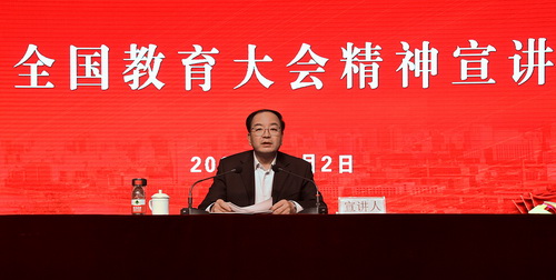 11月2日下午,省教育厅在兰州文理学院举行学习全国教育大会精神报告会。副省长、教育部“百人宣讲团”成员张世珍对全国教育大会精神作了解读,强调要充分认识全国教育大会的重大意义,深入学习领会习近平总书记关于教育的重要论述,扎实推进教育现代化的重点任务,并就如何做好学习贯彻落实全国教育大会精神提出了具体要求。我校党委书记俞子泓、副校长李贵山带领马克思主义学院部分教师聆听了报告。