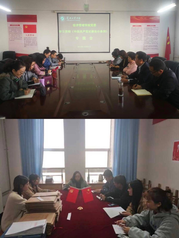 为增强广大党员干部的纪律意识、规矩意识,10月9日下午,经济管理学院党委组织教工党支部、学生党支部党员集中学习了新修订的《中国共产党纪律处分条例》。会议由学院党委书记王春升主持。
