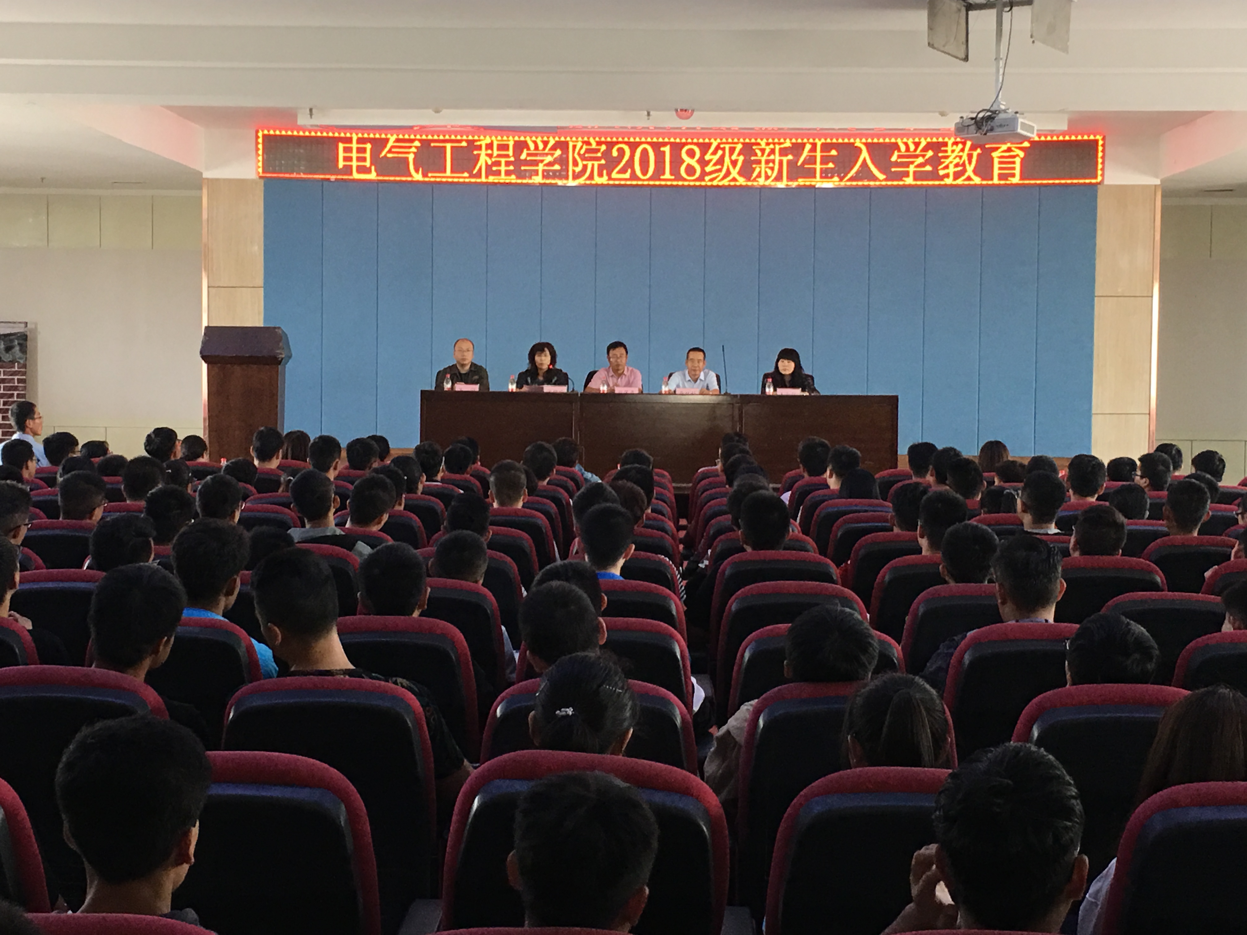 2018年9月5日下午,电气工程学院于在八楼会议中心召开2018级新生入学教育大会。学院党委书记刘保录,院长李双科,副院长张维玲、王淑红、吴宁,学院副高以上职称教师,各教研室及实验中心主任,学工办成员以及全体2018级新生参加了会议。大会由张维玲主持。