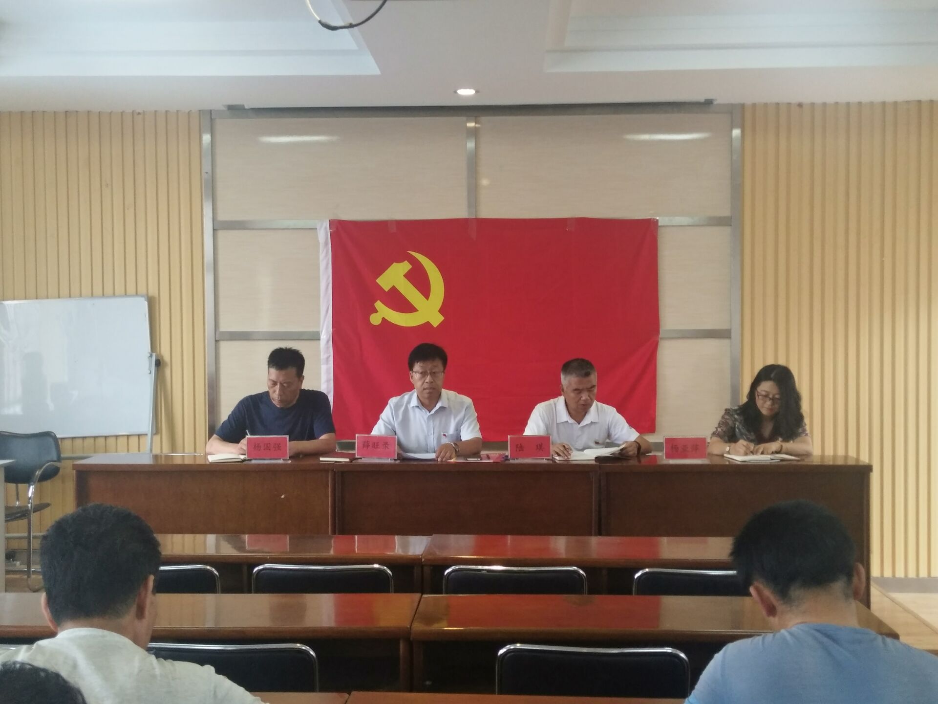 7月3日下午,后勤党总支在团学楼5楼举行主题党日活动,在鲜艳的中国共产党党旗下,全体党员重温了入党誓词,进行了宣誓,接着,全体党员认真观看了"不忘初心,继续前进"系列政论专题片之"攻坚克难",随后,全体党员通过无记名投票增选了后勤党总支委员,后勤党总支书记薛旺录主持活动。