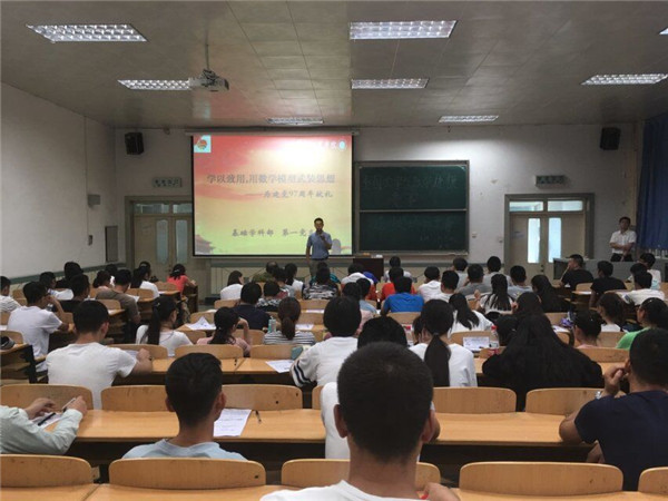 6月22日下午,基础学科部第一党支部在第一学术报告厅举办“学以致用,用数学模型武装思想—为建党97周年献礼”主题党日活动。活动由基础学科部主任祁忠斌主持,基础学科部党总支书记沈文国、第一党支部全体党员、数学建模协会成员及数学建模爱好者参加了此次活动。会上,基础学科部第一党支部书记铁军带领大家重温入党誓词;祁忠斌就本次活动的目的意义以及动员学生参与数模竞赛、队员的选拔作了指导性发言;优秀建模竞赛指导教师董珺作数学建模知识专题讲座;沈文国作了总结发言。