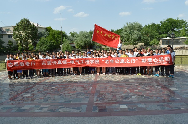 2018年6月2日中午,电气工程学院分团委学生会和学生党支部联合前往颐瑞康老年公寓开展以“志愿敬老行,关爱传真情”为主题的老年公寓献爱心活动。 同学们分组为老人们打扫房间、洗衣服;与老人们进行沟通、交流,聆听老人们讲述他们往昔的美好并为老人们捶背、按摩、剪手指。最后为老人们献上了一台精彩的演出,并献上了自己手工制作的礼品及生活用品。此次慰问受到了工作人员的一致好评。