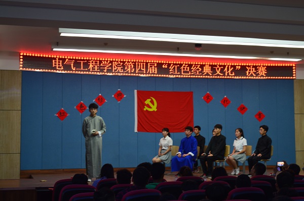 2018年5月30日晚,电气工程学院在八楼会议在中心举办第四届红色经文化大赛决赛。学生处处长贾魁,学院党总支书记刘保录、副院长张维玲、部分教师以及15、16级全体党员,2017级全体学生参加了活动。 经过初赛,共有8个节目进入到了决赛。经过激烈角逐,最终自动化16-3班《赵一曼》、电气16-1班《红梨木》、轨道17-1班《青春中国》获得前3名,焦丽婷等3名学生获“优秀表演”奖;郑霄云获“优秀导演”奖。 本次活动回顾了党的奋斗历史,讴歌了党的光辉业绩,弘扬了革命文化,进一步鼓舞青年学生继承和发扬党的光荣传统和优良作风,坚定了青年学生的理想信念。