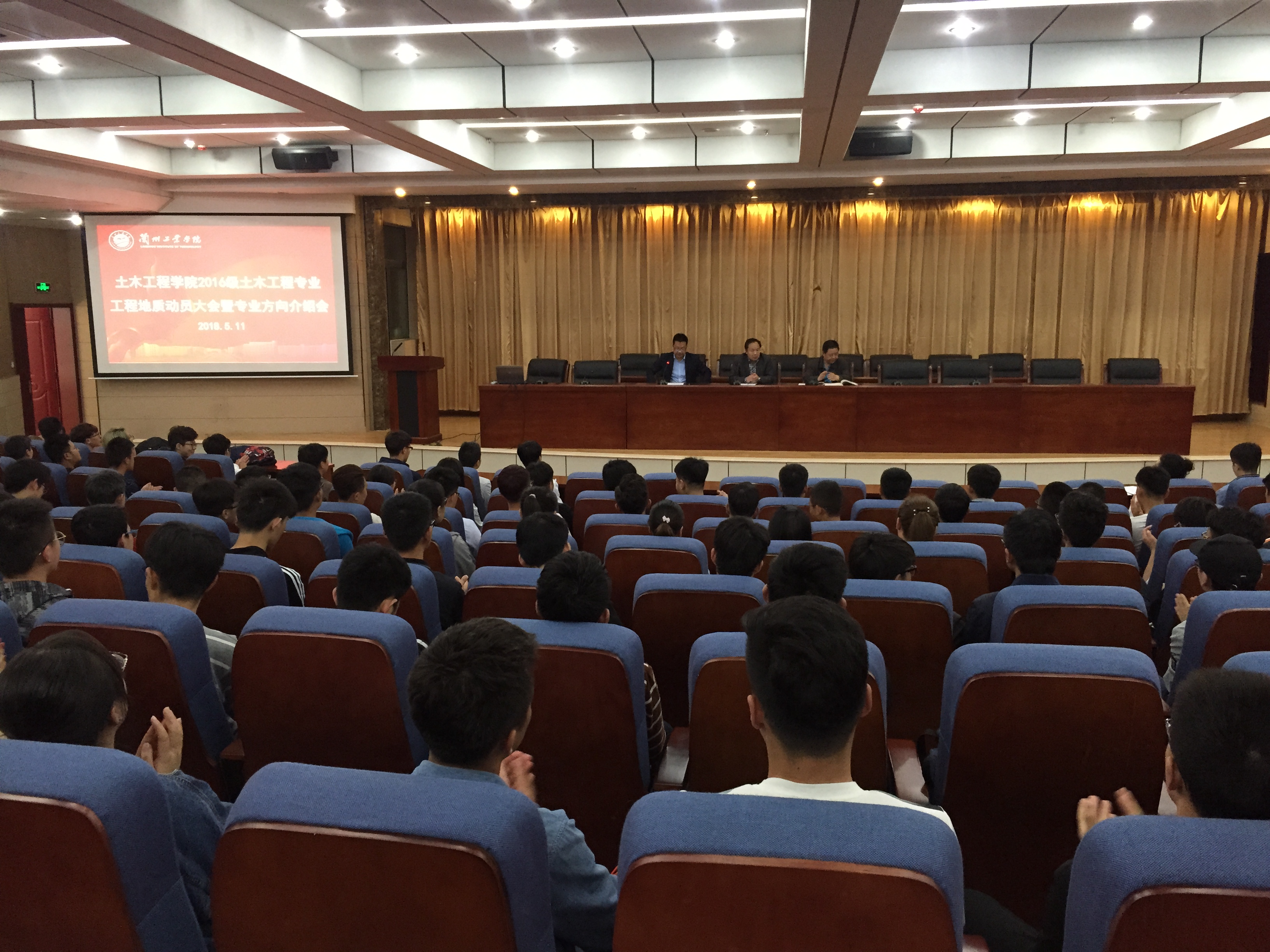 2018年5月11日下午,土木工程学院在第三学术报告厅召开2016级土木工程专业工程地质实习动员大会暨专业方向介绍会。学院党总支部书记赵万双、院长马守才、副院长任永忠、全体工程地质实习指导教师及2016级土木工程专业的200余名学生参加了大会,大会由任永忠主持。