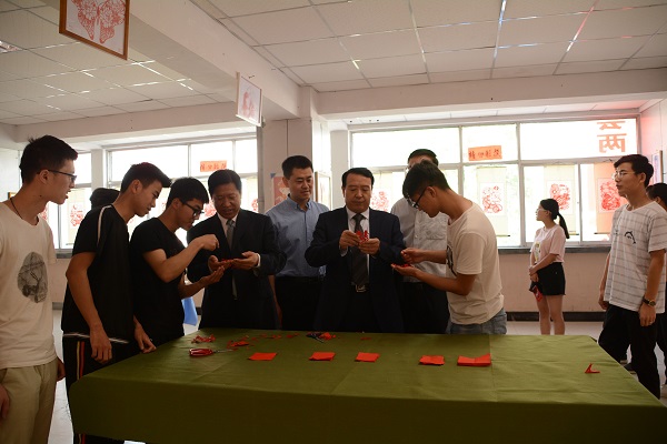 近日,由校团委、图书馆主办,大学生社团联合会传承者剪纸协会承办的剪纸艺术大赛暨传承者剪纸协会成立两周年纪念展在大学生活动中心开展。此次展览为期一周,参观人次达2000余次。 本次纪念展主题为:“剪艺传承两周年,书香年华在校园。”展出作品一百余副,其中包括人物形象、花鸟鱼虫、福禄寿喜、风景风景、动漫人物及大幅长卷。活动开展期间,校长王华栋等校领导及学院、部门负责人莅临活动现场,对本次剪纸艺术展品给予充分肯定,对协会的发展给予指导。