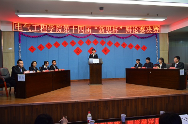 2017年12月6日晚,电气工程学院在八楼会议中心举办“新思杯”第十四届辩论赛决赛。学院有关教师和学校各学生组织负责人一同观看了此次辩论赛。 此次比赛历时一个月,共有18支队伍参加了比赛。比赛中,辩手们用出众的应变、表达能力、敏捷的思维赢得了在场观众的阵阵掌声。经过激烈的角逐,最终轨道17-1班获冠军、轨道17-2班获亚军。 此次活动为学院学子提供了展现自己的舞台,提高了班级凝聚力,对深化学生文化建设起到了积极作用。