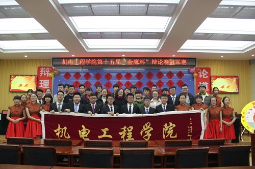 12月10日晚,机电工程学院在第一学术报告厅举行第十五届“金鹰杯”辩论赛冠军赛。学院党总支书记张红岩、有关教师以及各学院学生组织负责人一同观看了比赛。 经过双方精彩的辩论,最终机设17-1班获得冠军。此次活动为学院学子们提供了一个交流和锻炼的平台,展示了学子的蓬勃朝气和勇于展现自我的能力,丰富了校园文化生活。
