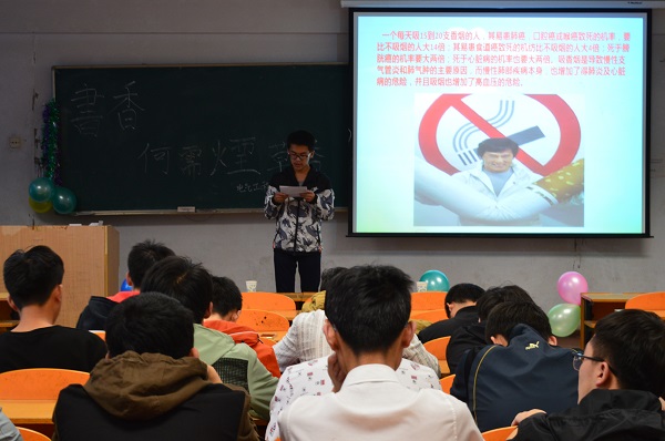 2017年3月,电气工程学院15、16级各团支部开展“无烟校园,清新一片”系列团学活动。 此次活动历时一个月,15、16级各团支部积极响应,紧扣主题,开展了演讲比赛、主题班会、影片观看、文艺晚会、知识竞赛等形式多样的活动。禁烟活动自开展以来,得到了大家的一致认可,教学楼、生活区吸烟现象明显减少。全院师生纷纷表示,禁烟活动可以让大家驱散香烟雾霾,弘扬健康生活新风尚,构建无烟文明新常态。