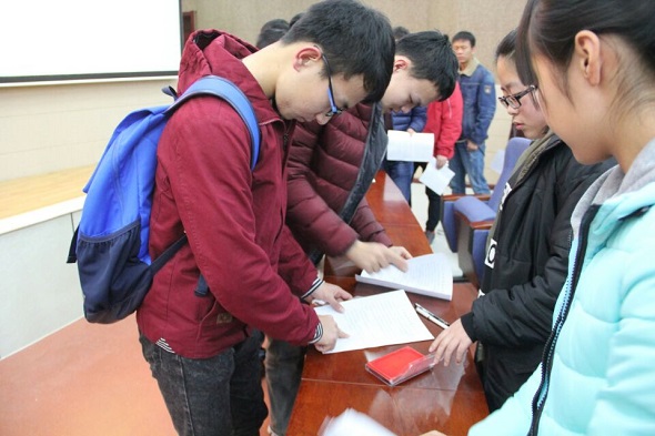 为了进一步严肃考风考纪,树立诚信道德意识,12月28日下午,机电工程学院在第三学术报告厅举行2016级学生“考试诚信承诺书”签订仪式。 签订仪式上,学工办主任马青丽宣读了《兰州工业学院考场规则》、《兰州工业学院学生处分管理规定》;2016级辅导员杨嘉悦通报了学院往届学生考试违纪文件;优秀学生代表姚翰林与2013级新生分享了学习经验;新生代表张帅帅宣读了《机电工程学院考生诚信考试承诺书》; 学院副院长杨永萍在总结讲话中详细阐述了大学生诚信修养的重要性,对2016级各班提出了争创考试零作弊班级的要求。 会后,2016级全体学生签订了“考试承诺书”,并按下自己的手印。