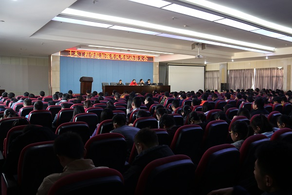 2016年12月30日下午,土木工程学院在八楼会议中心召开加强考风考纪动员大会,院长马守才、副院长陈玉梅、学院全体教师、16级全体学生及其它年级学生代表参加了会议。会议由副院长张明朗主持。 会上,院学生工作办公室主任宣读了《兰州工业学院考试纪律条例》。陈玉梅作了土木工程学院关于开展“严肃考纪校规、加强考风考纪”主题教育活动的相关安排。学生会副主席赵梦龙代表全院学生发言,号召同学们遵守校纪校规、诚信考试、诚实做人。 马守才在总结讲话中指出,辅导员、班主任、任课教师要齐抓共管,认真履行育人职能,坚决杜绝考试违纪作弊现象,积极营造一个洁净、公平的考试环境,力争使学院的学风建设再上新台阶!