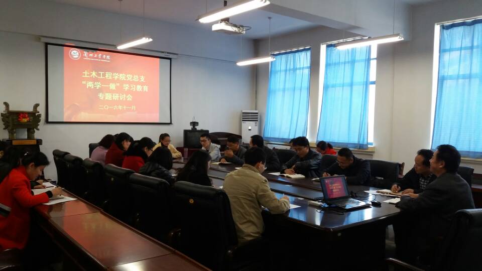 11月16日下午,土木工程学院党总支在院会议室召开 “两学一做”学习教育第四专题研讨会。全体教工党员参加了学习讨论。会议由教工党支部书记张明朗主持。