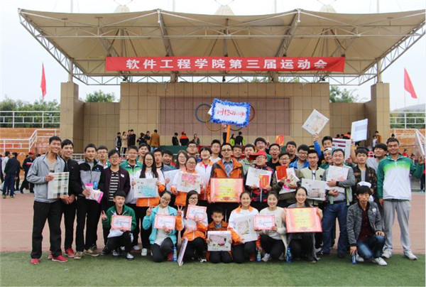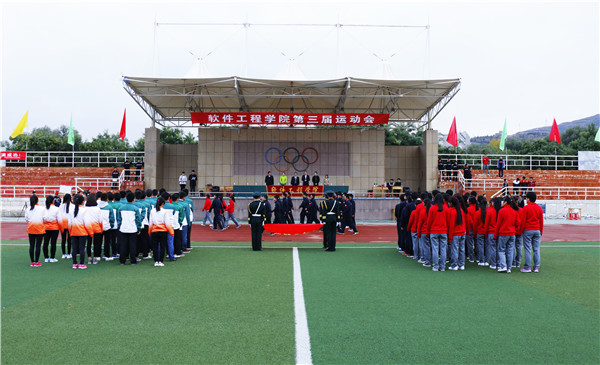10月22日上午,软件工程学院第三届运动会在学校田径场举行。学院全体师生参加了开幕式。 上午8时,伴随着激昂的《运动员进行曲》旋律,国旗护卫队方阵、各班级方阵、教师代表队、裁判代表队等16支代表队精神饱满、斗志昂扬,迈着矫健整齐的步伐列队入场。整齐的动作、矫健的身姿、响彻云霄的口号充分展示了学院师生积极进取、奋发向上的精神风貌。 学院党总支书记赵亚明致开幕词。他希望全体运动员能以最佳状态投入比赛,顽强拼搏,奋勇争先,确保本次运动会赛出竞技水平,赛出道德风尚,赛出团结友谊,全面展现全院师生蓬勃向上的时代风采,争取运动成绩和精神文明的双丰收。运动员、裁判员代表作了庄严宣誓。开幕式表演环节中,武术协会带来了精彩、刚劲、有力的武术表演,拉丁舞协会带来了动感十足的表演,以及活力四射的啦啦操表演获得了阵阵喝彩。 开幕式结束后,各项赛事有条不紊地进行,个人项目与集体项目、竞赛项目与趣味项目有机融合在。赛场上运动健儿们激情飞扬、奋力拼搏,台上主持人追踪报道比赛进程,热情洋溢地宣读着各班通讯员现场撰写的稿件,整个赛场热闹非凡,秩序井然。拔河比赛更是在一阵阵的加油声和呐喊声中把整个运动会推向了高潮。 下午5时,运动会胜利闭幕。院长刘新辉致闭幕词,对本届运动会取得的成绩予以充分肯定,希望全院师生能够以运动会为契机,在今后的工作学习中,能够团结协作、敢于拼搏、奋发向上,勇往直前。 本次运动会共有600余名运动员参加了22个项目的比赛,其中学生组15个项目,教工组7个项目。经过激烈角逐,共189人获奖,其中获奖教师24名。最终网络14-2班、数媒16-2班、数媒16-1班取得团体前三名,图像15班获得“体育道德风尚”先进集体奖,充分展现了全院师生积极进取和奋勇拼搏的风采,增强了各班级的凝聚力和集体荣誉感。学校领导以及教务处、体育部、保卫处、工会对本届运动会给予了大力支持和帮助,确保了本次赛事圆满成功。