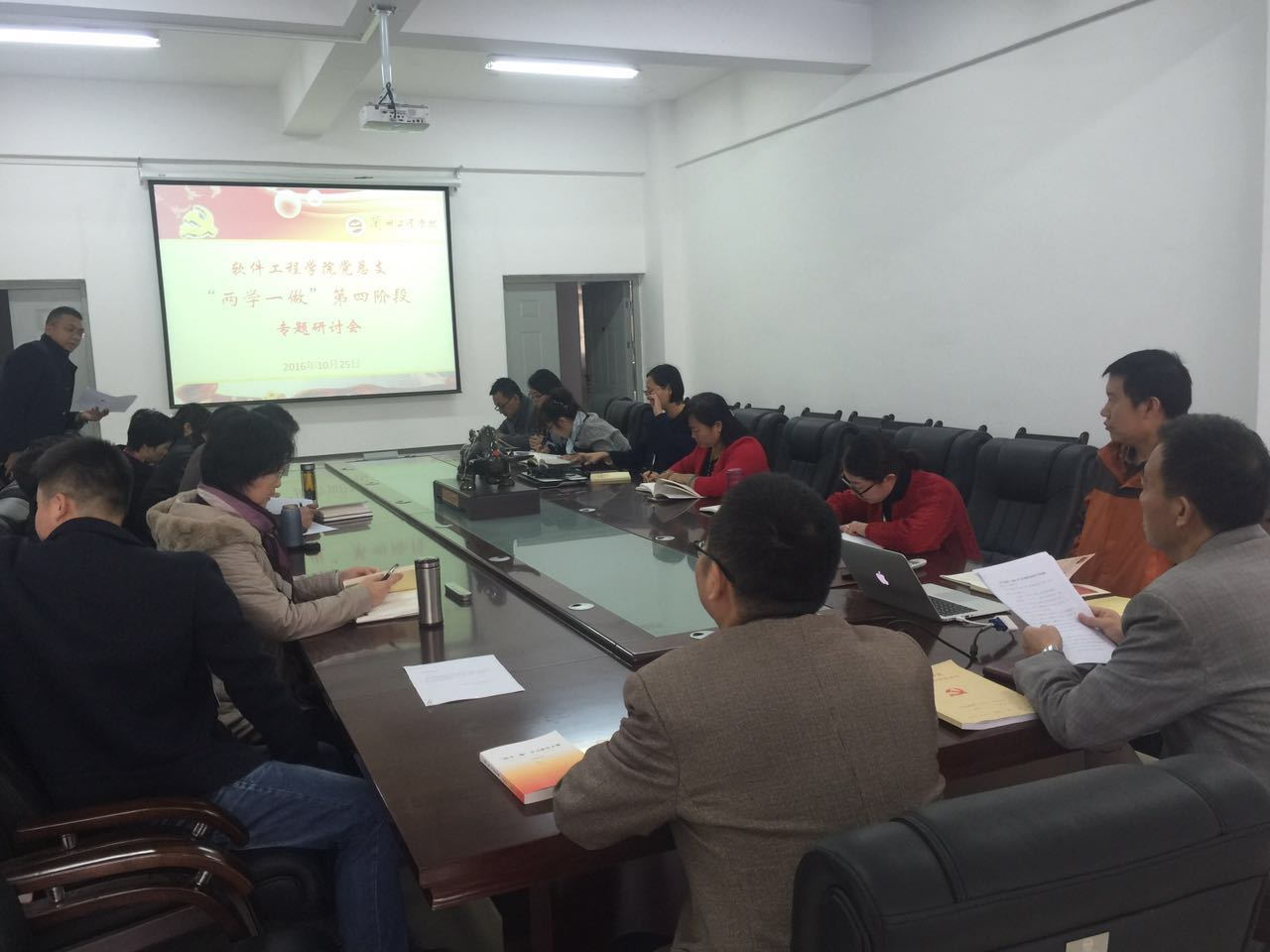 2016年10月25日下午,软件工程学院党总支召开了“两学一做”第四阶段专题研讨会,全体教职工党员参加了专题研讨会。