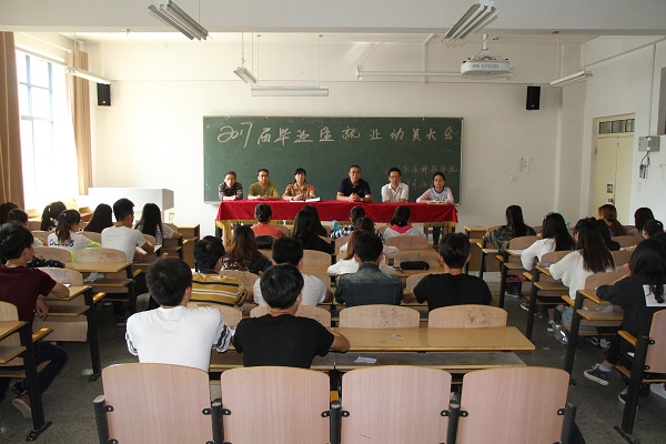 9月20日下午,人文社会科学学院在四号教学楼A601教室举行2017届毕业生就业动员大会。学院党总支书记刘军、院长张小华、副院长张小东、学工办主任李雯娟、辅导员马福云、毕业班班主任柳斌以及2017届全体毕业生参加了大会。李雯娟主持会议。