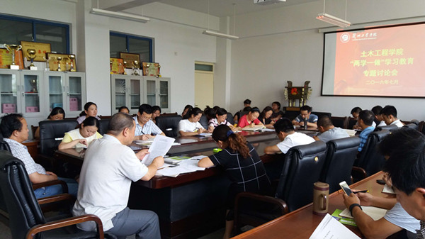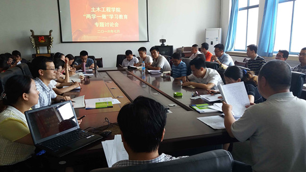 2016年7月5日下午,土木工程学院党总支召开“两学一做”专题学习研讨会,全体教职工党员参加了学习研讨会。 研讨会上,学院院长马守才介绍了兰州工业学院关于建立健全师德师风建设长效机制的实施方案、兰州工业学院教职工师德考核办法、兰州工业学院“师德标兵”评选办法。 党总支书记赵万双从为什么提出建立健全师德师风建设长效机制、师德师风在育人中重要性以及如何提高师德师风三个方面强调了建设师德师风长效机制的重要性。与会党员纷纷表示,要充分认识增强师德师风建设的重要性和紧迫性,不断提升自身的师德师风,并且体现在日常的工作生活中,确保“两学一做”学习教育取得实效。(供稿、摄影/土木工程学院)