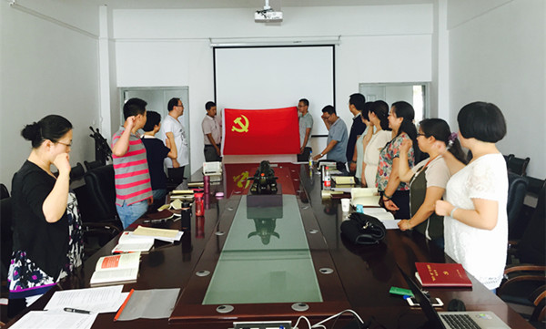 党总支书记周征作了“学习新党章的体会”专题辅导讲座,从学习贯彻新《党章》的重要意义、新《党章》的主要修改内容及解读等方面为全体教工党员上了一堂精彩的党课。随后,全体教工党员在院长刘新辉的领誓下,面向鲜艳的党旗,举起右手重温了入党誓词。